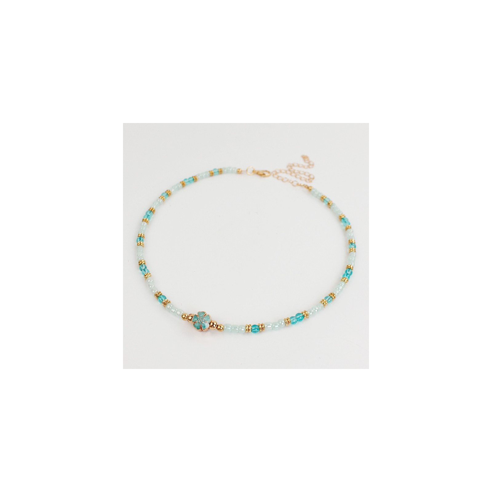 Collar de mostacillas combinadas con piezas pasantes de CCB, dije exclusivo pintado a mano y bolitas de vidrio.