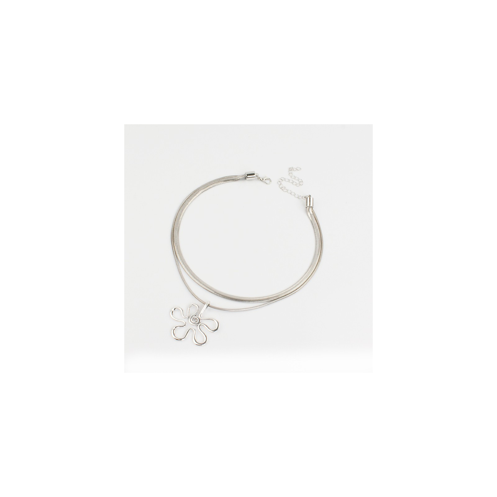 Collar de doble caída de cadenas diferenciadas, con dije exclusivo de fundición con forma de flor.