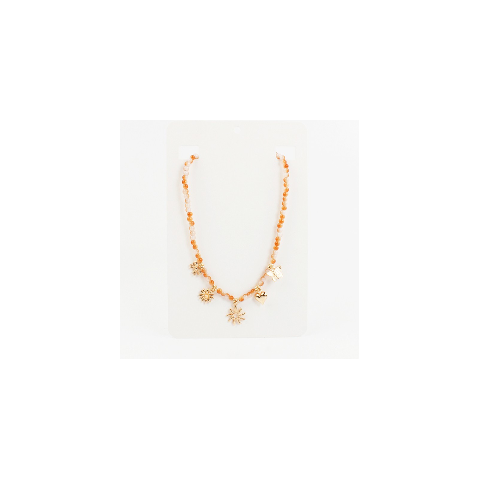 Collar flexible de lenga enhebrada con bolitas de vidrio diferenciadas con múltiples dijes primaverales de fundición.