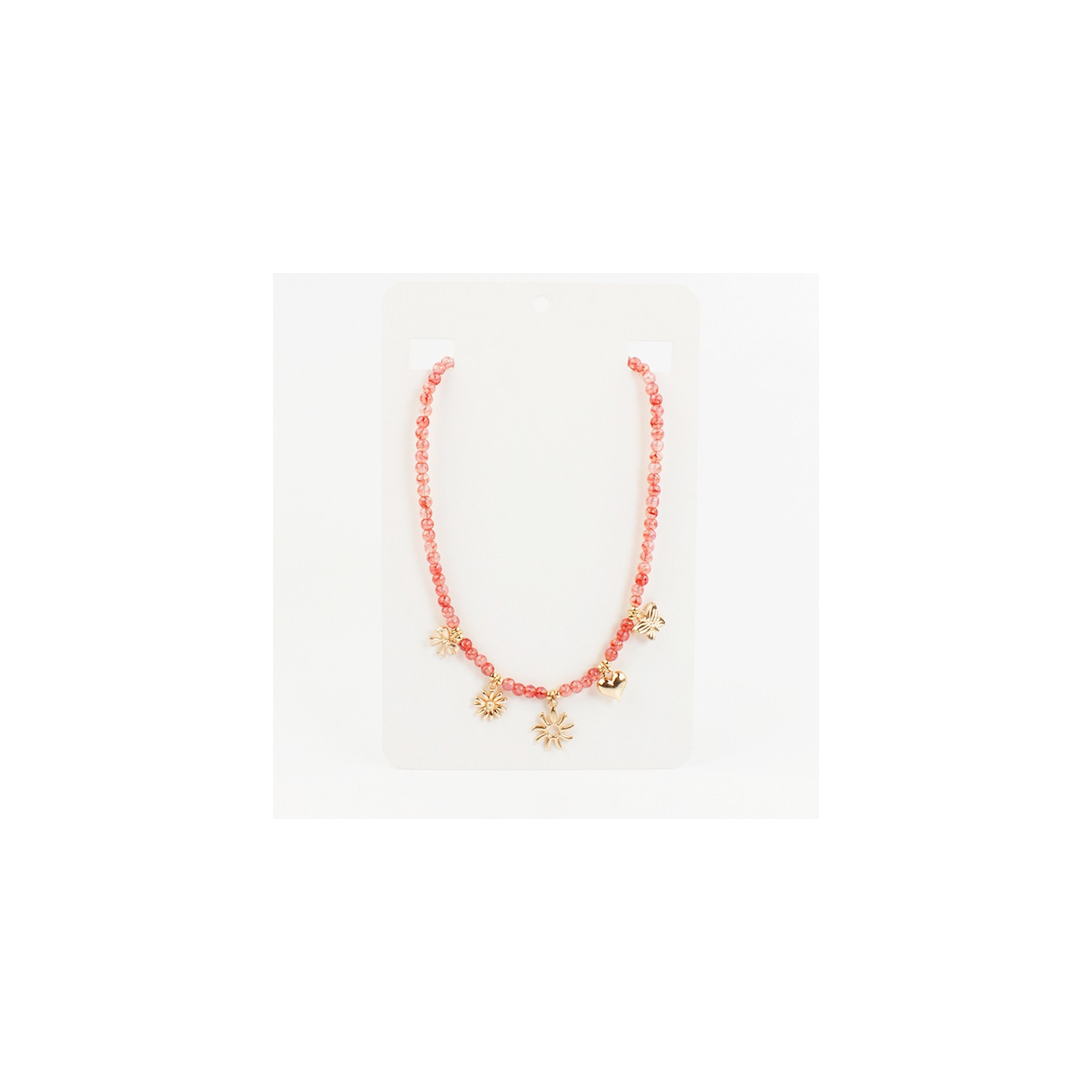 Collar flexible de lenga enhebrada con bolitas de vidrio diferenciadas con múltiples dijes primaverales de fundición.