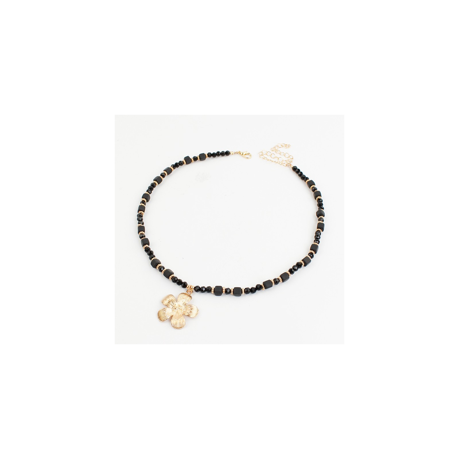 Collar corto de rocas de cristal con fimos cuadrados y dije exclusivo dorado.