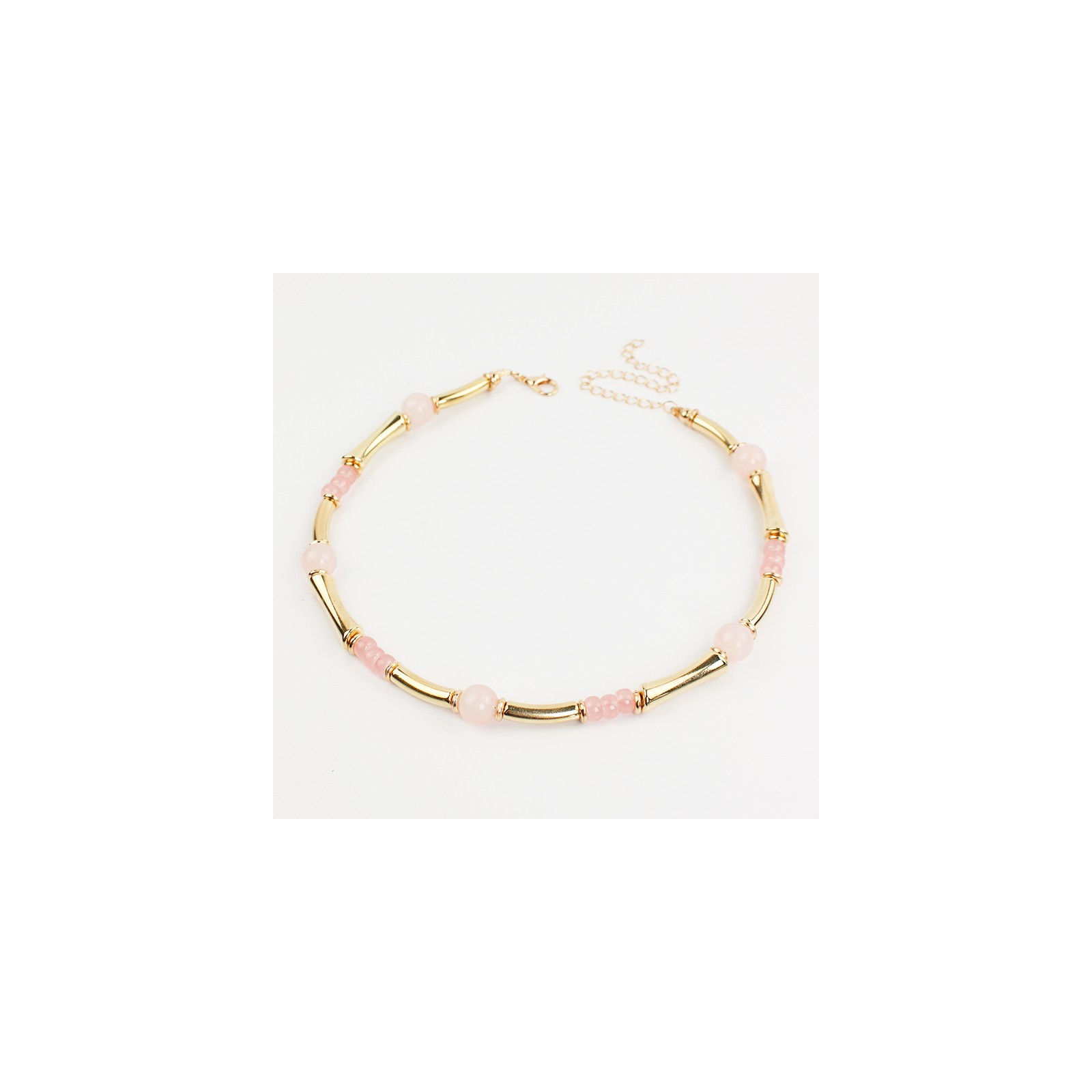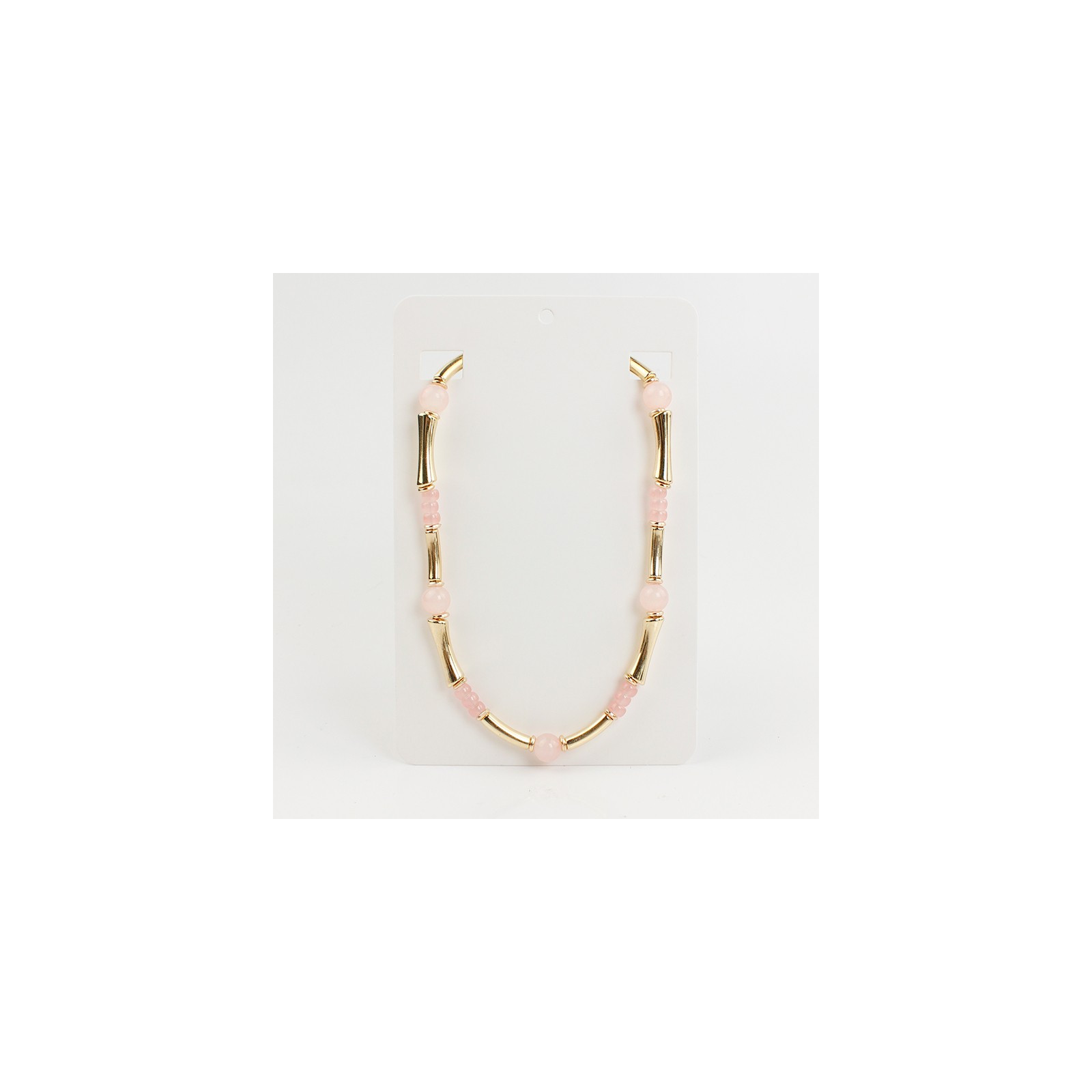 Collar flexible de lenga enhebrada con piezas de vidrio diferenciadas, combinadas con bolitas de vidrio y piezas de CCB exclusivas.