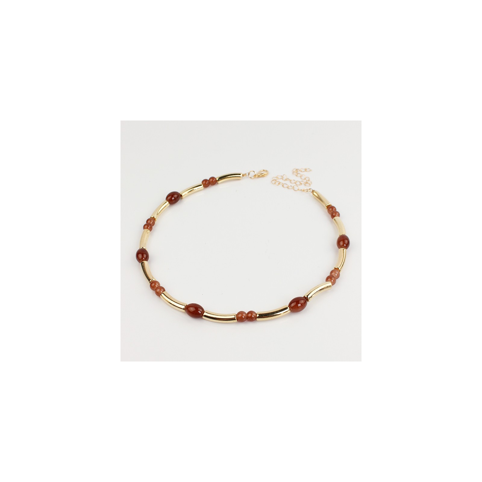 Collar flexible de lenga enhebrada con piezas de vidrio diferenciadas, combinadas con bolitas de vidrio y piezas de CCB exclusivas.