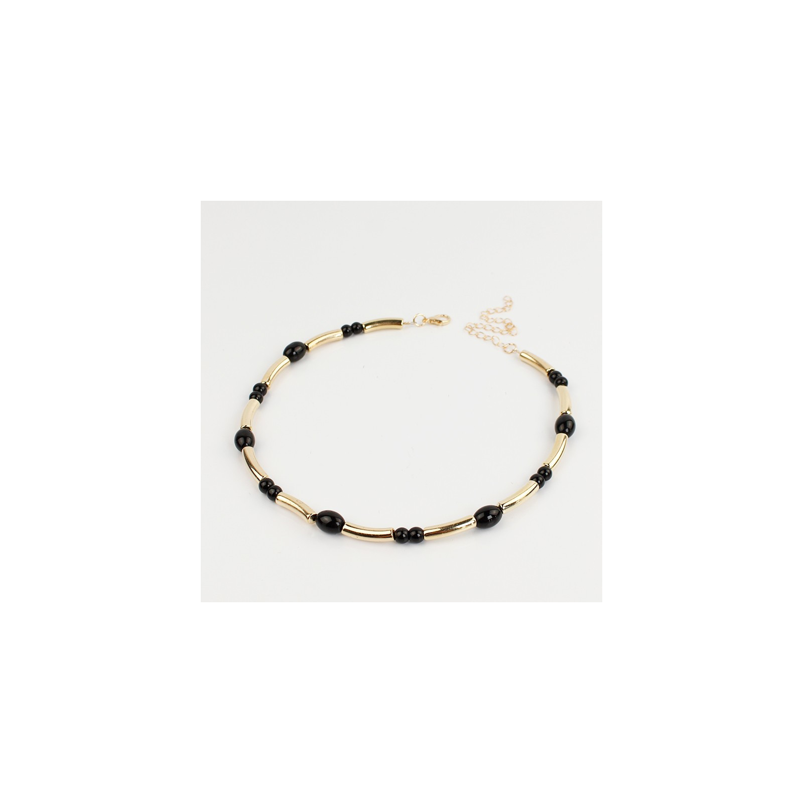 Collar flexible de lenga enhebrada con piezas de vidrio diferenciadas, combinadas con bolitas de vidrio y piezas de CCB exclusivas.
