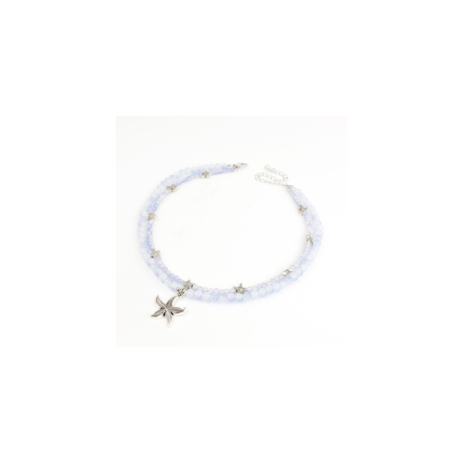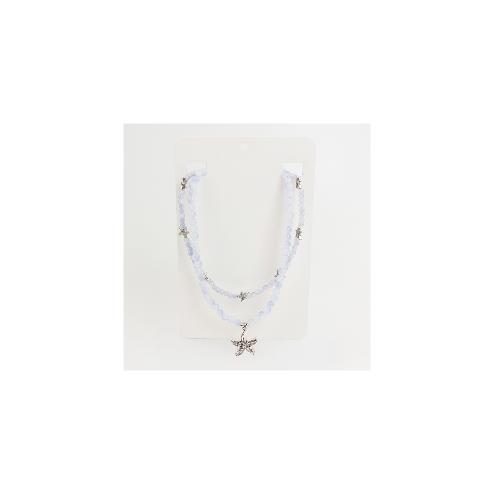 Collar flexible de doble caída, enhebrados con bolitas de vidrio diferenciadas, con dijes exclusivos con forma de estrella de mar.