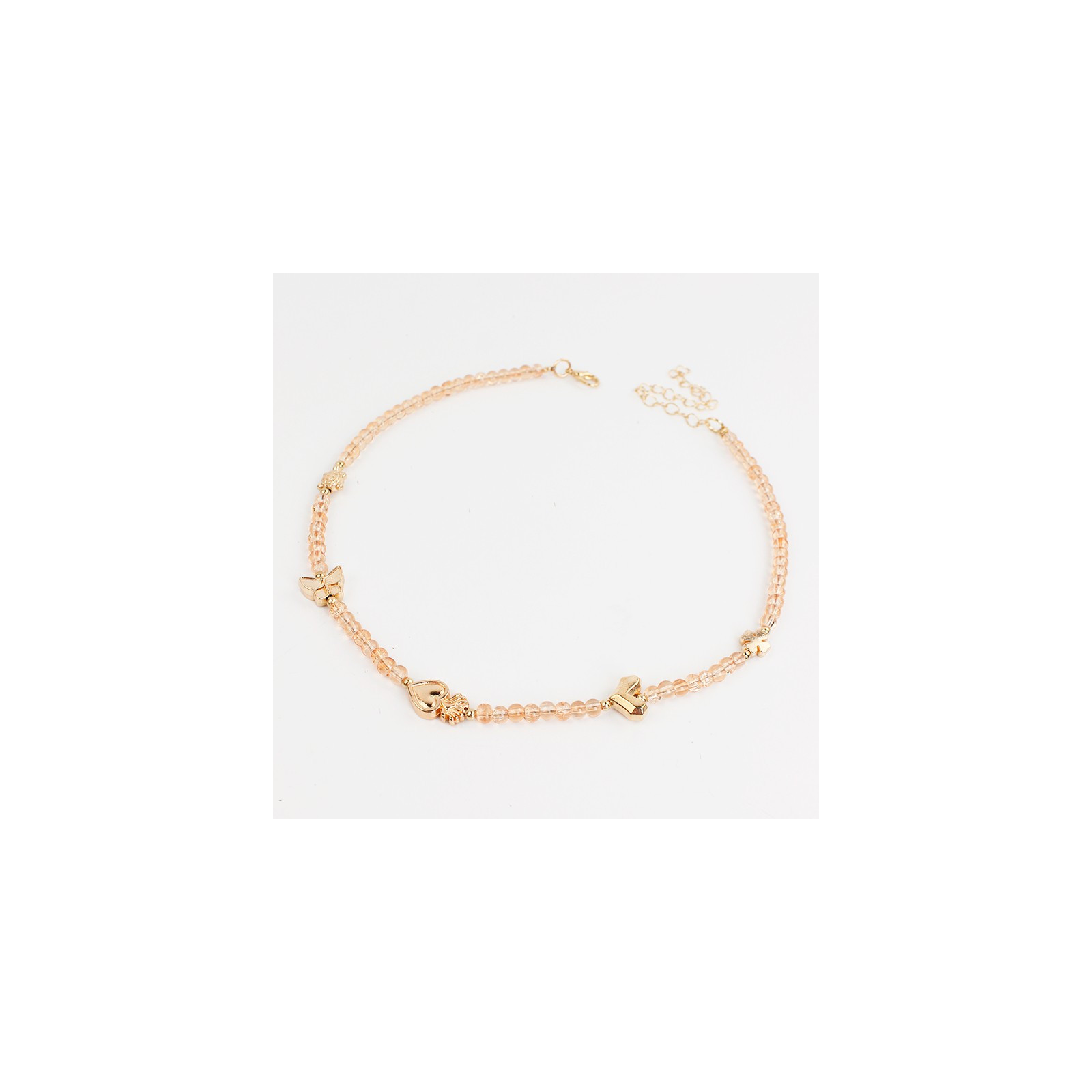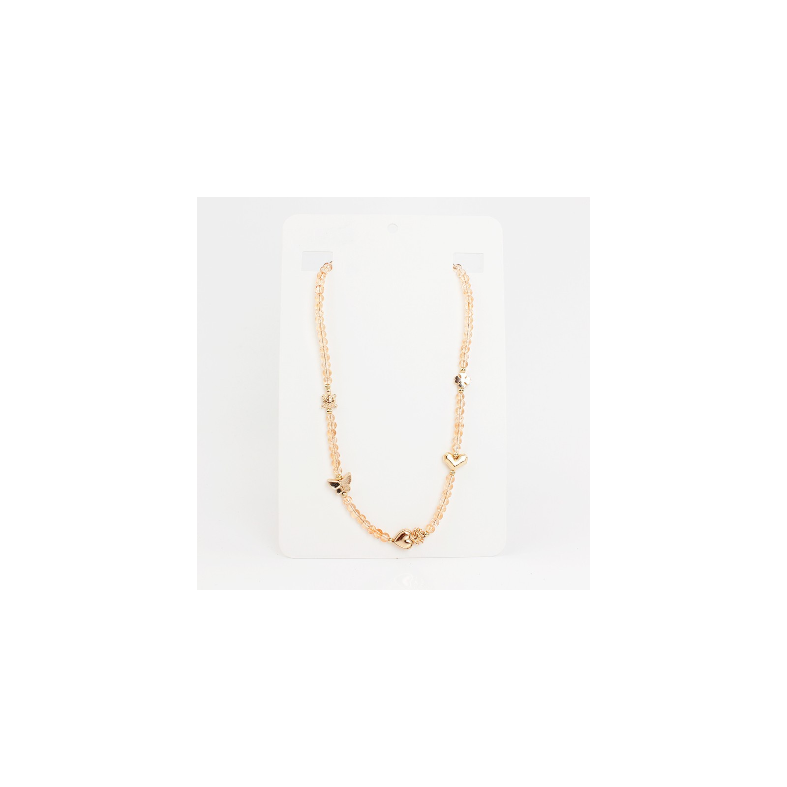 Collar de bolitas de vidrio diferenciadas con dijes exclusivos de fundición dorada.