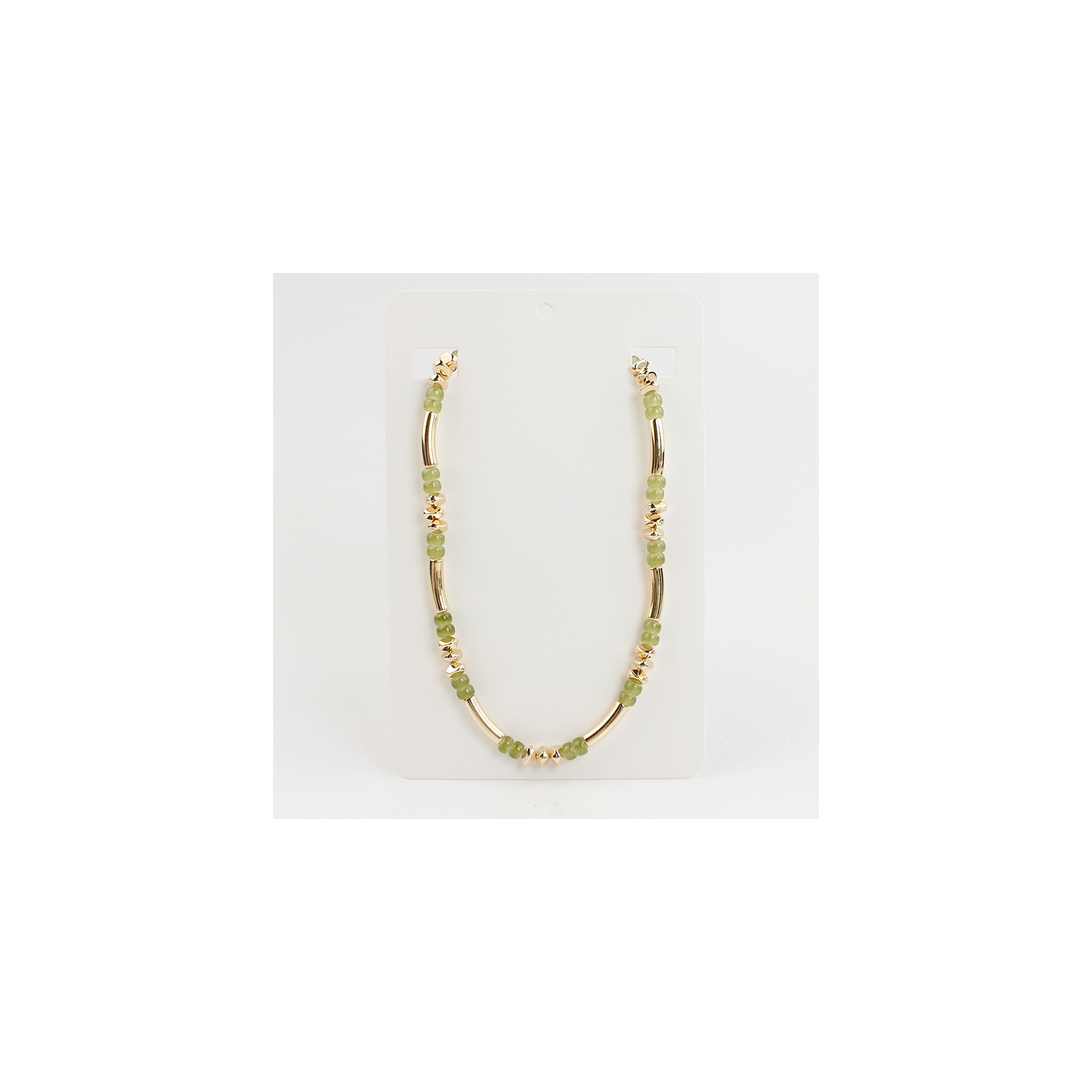 Collar flexible de lenga enhebrada con piezas de vidrio diferenciadas, combinadas con piezas de CCB exclusivas.