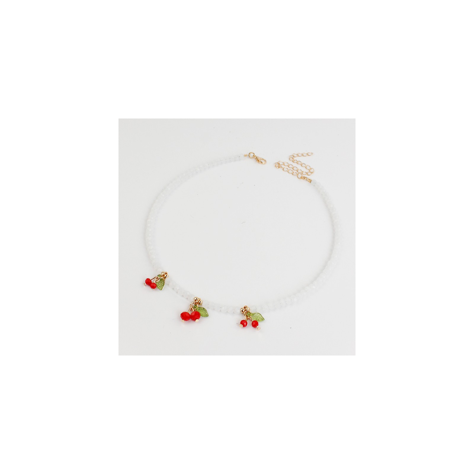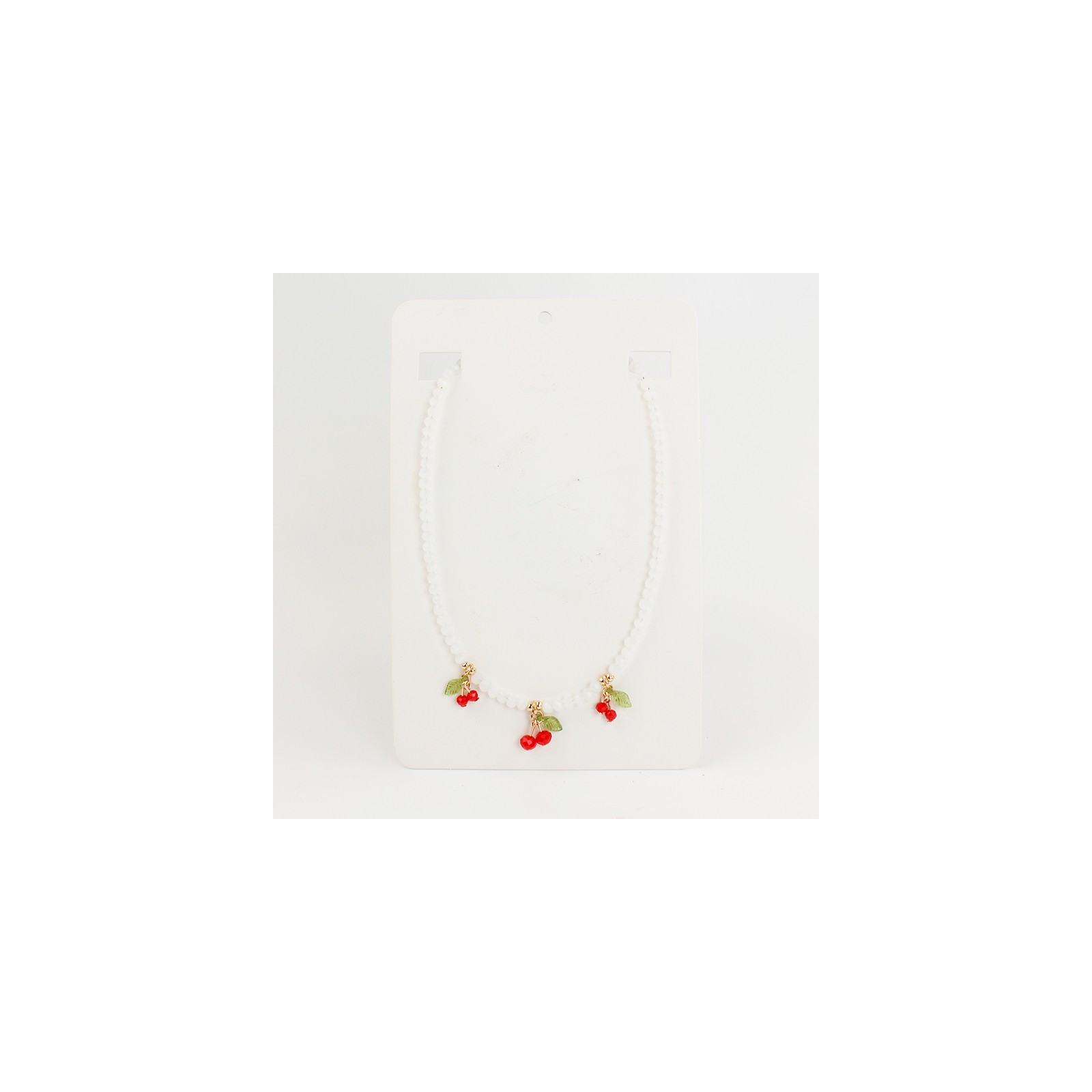 Collar flexible de lenga enhebrada con rocas de cristal diferenciadas, con dijes exclusivos de roca de cristal formando una cereza.