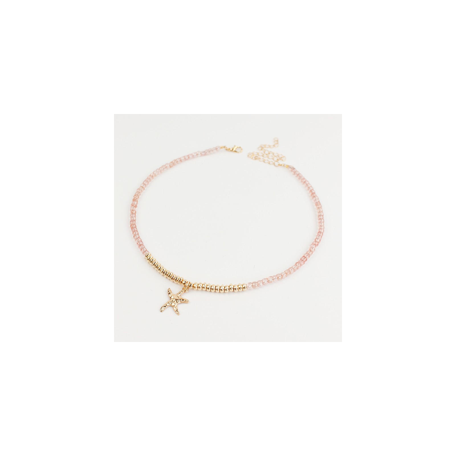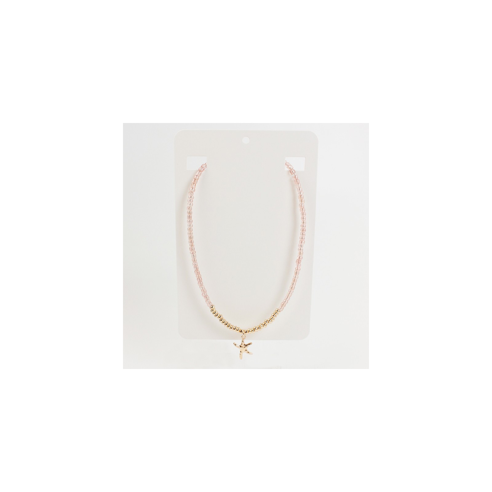 Collar flexible de lenga enhebrada con mostacillas, piezas pasantes de CCB dorado y dije exclusivo con forma de estrella de mar.