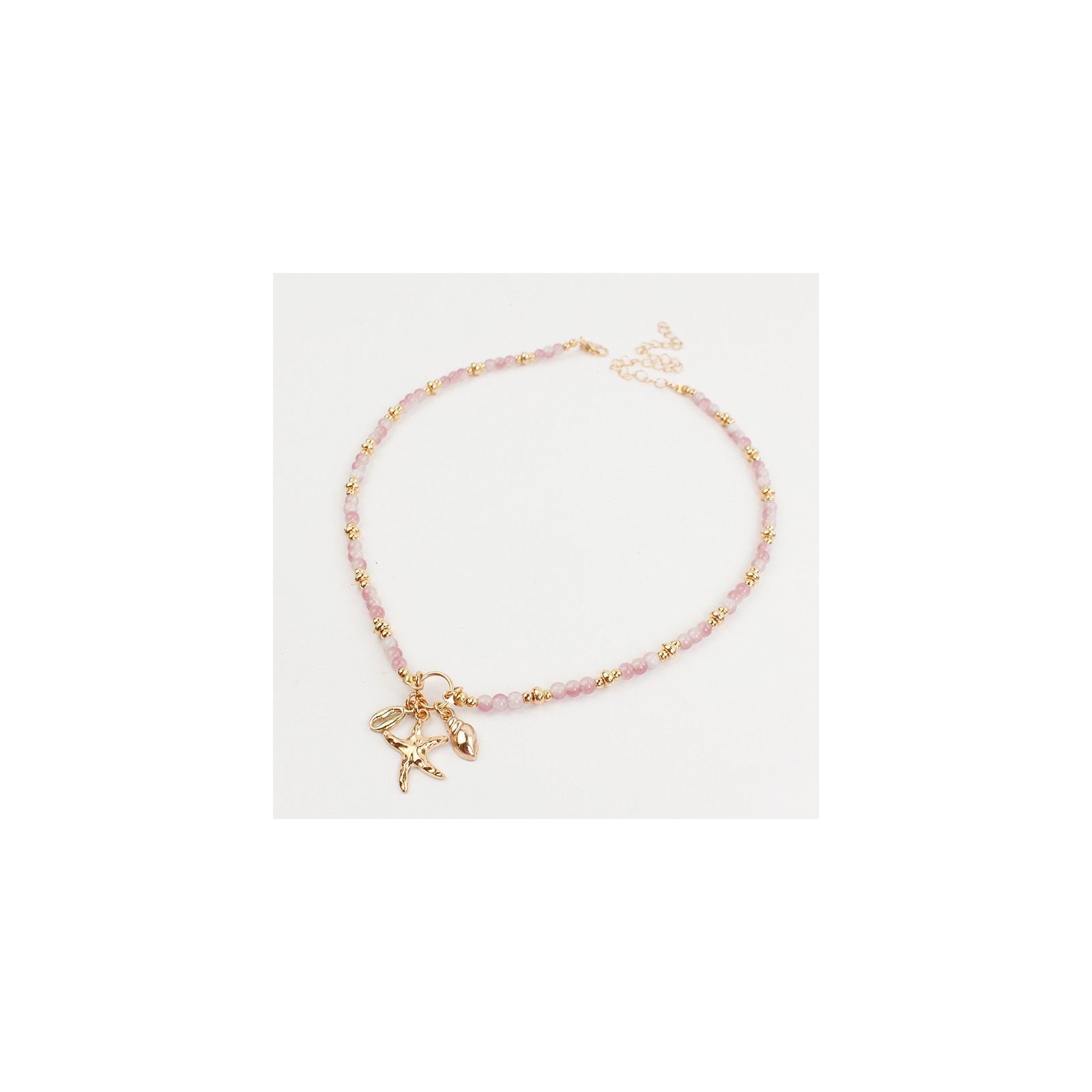 Collar flexible de lenga enhebrada con bolitas de vidrio diferenciadas, combinadas con piezas de CCB exclusivas y dijes de fundición marinos.