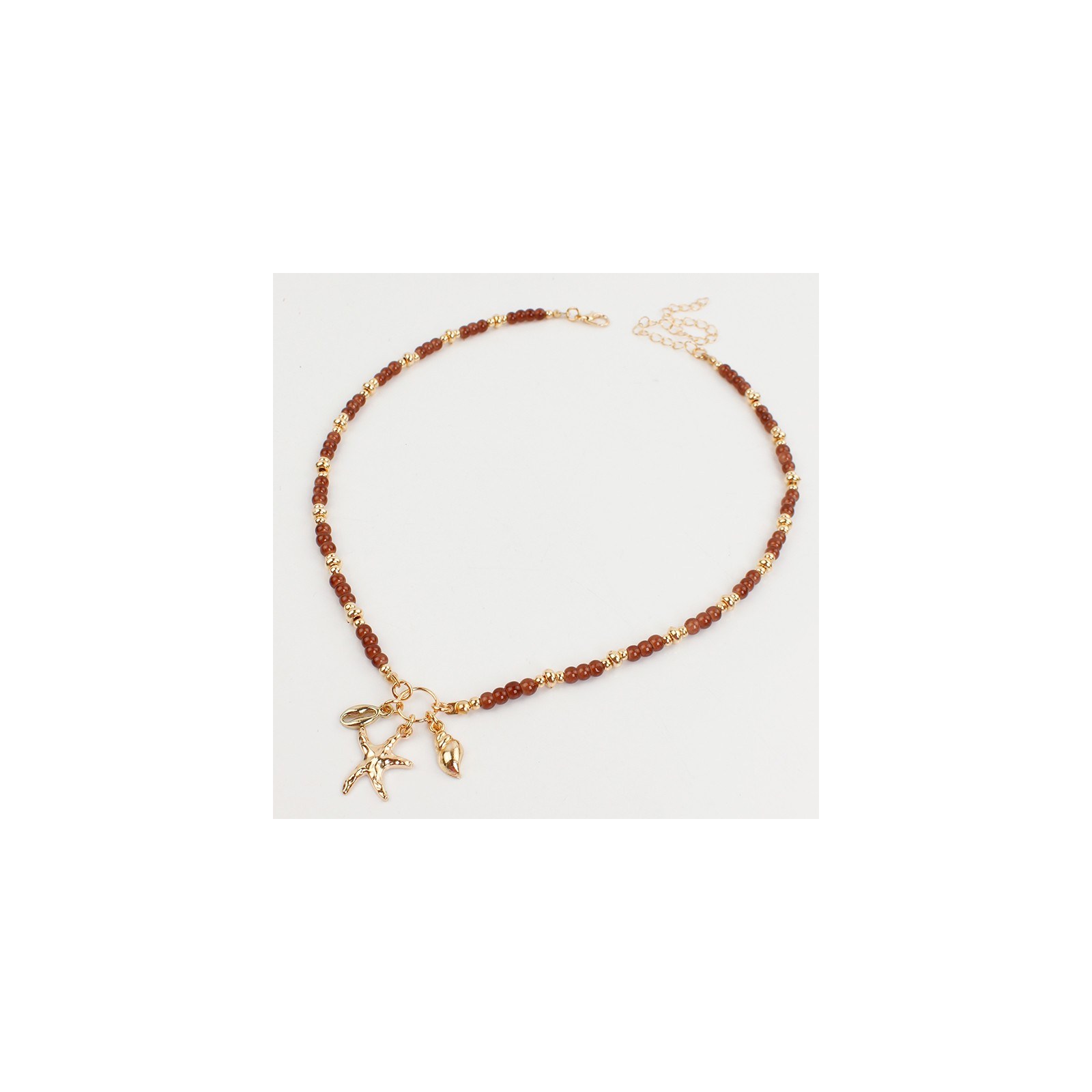 Collar flexible de lenga enhebrada con bolitas de vidrio diferenciadas, combinadas con piezas de CCB exclusivas y dijes de fundición marinos.