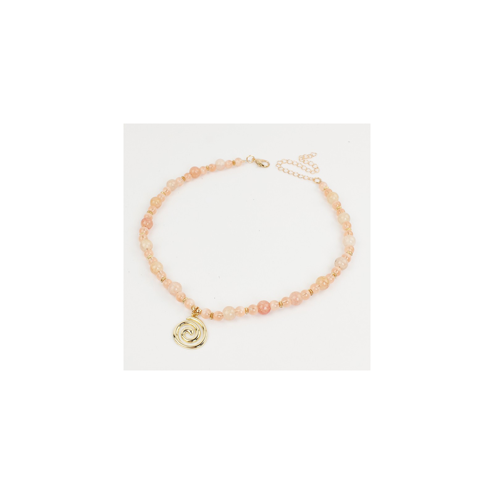 Collar flexible de lenga enhebrada con bolitas de vidrio diferenciadas de dos tamaños, combinadas con piezas de CCB exclusivas y dije de fundición.