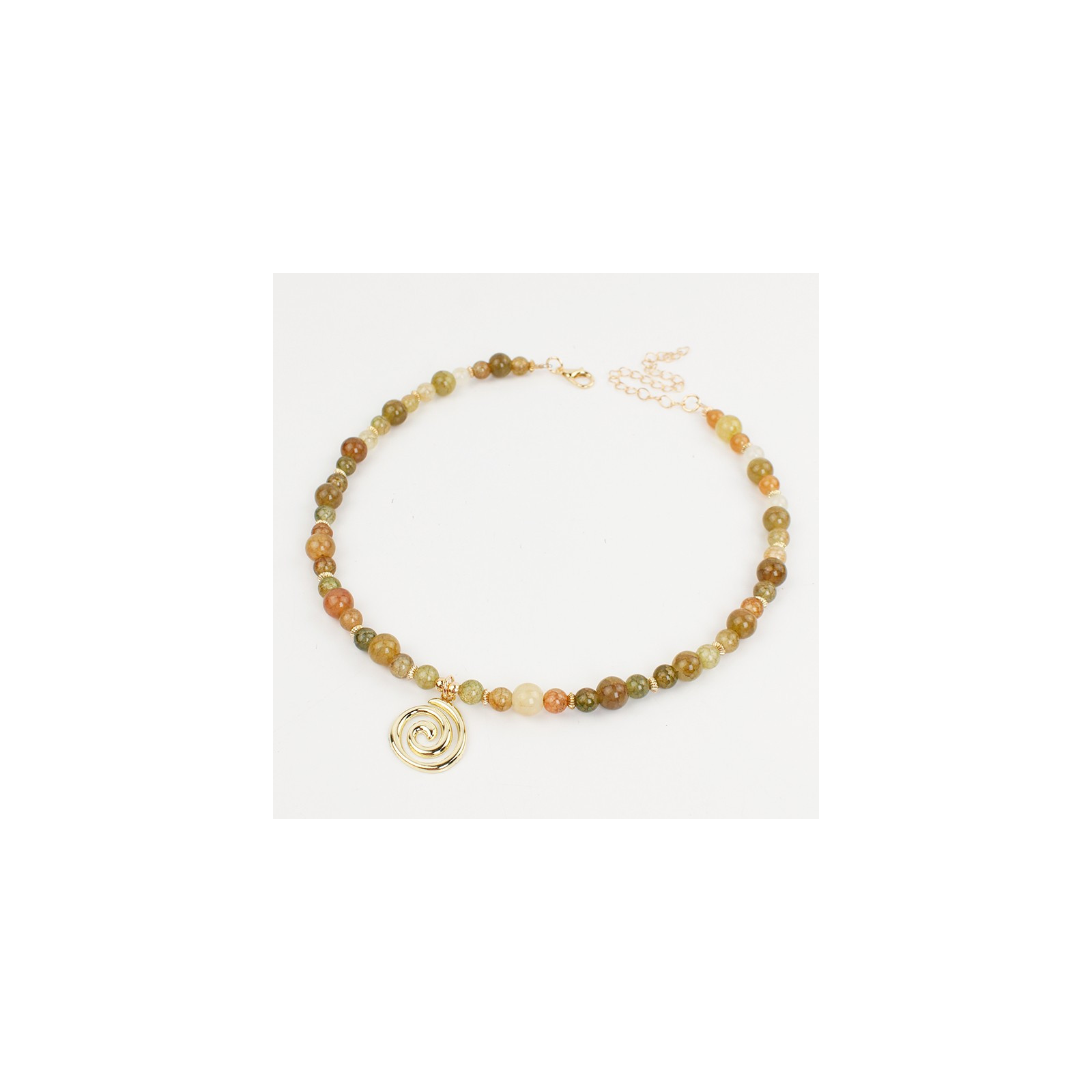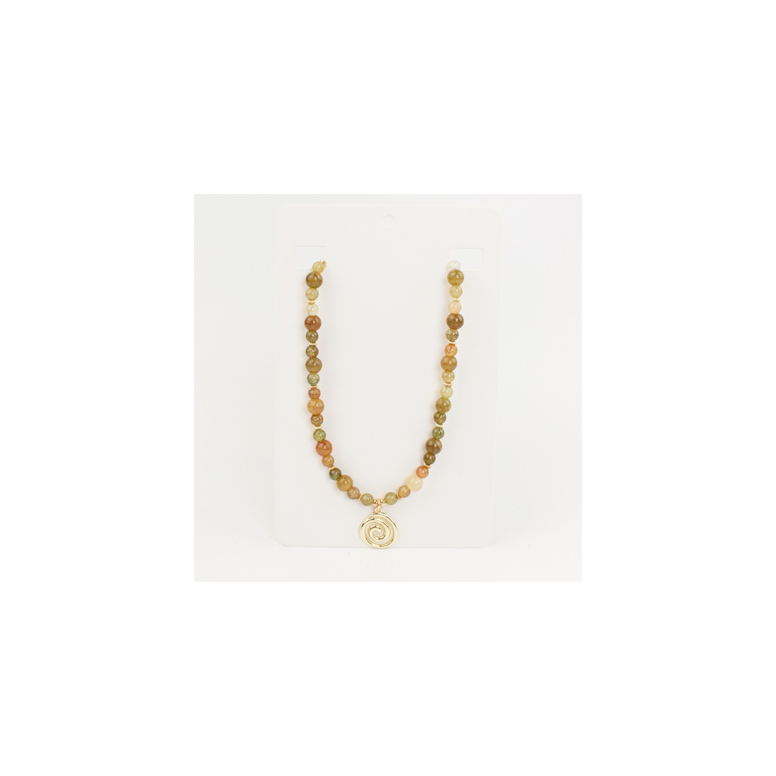 Collar flexible de lenga enhebrada con bolitas de vidrio diferenciadas de dos tamaños, combinadas con piezas de CCB exclusivas y dije de fundición.