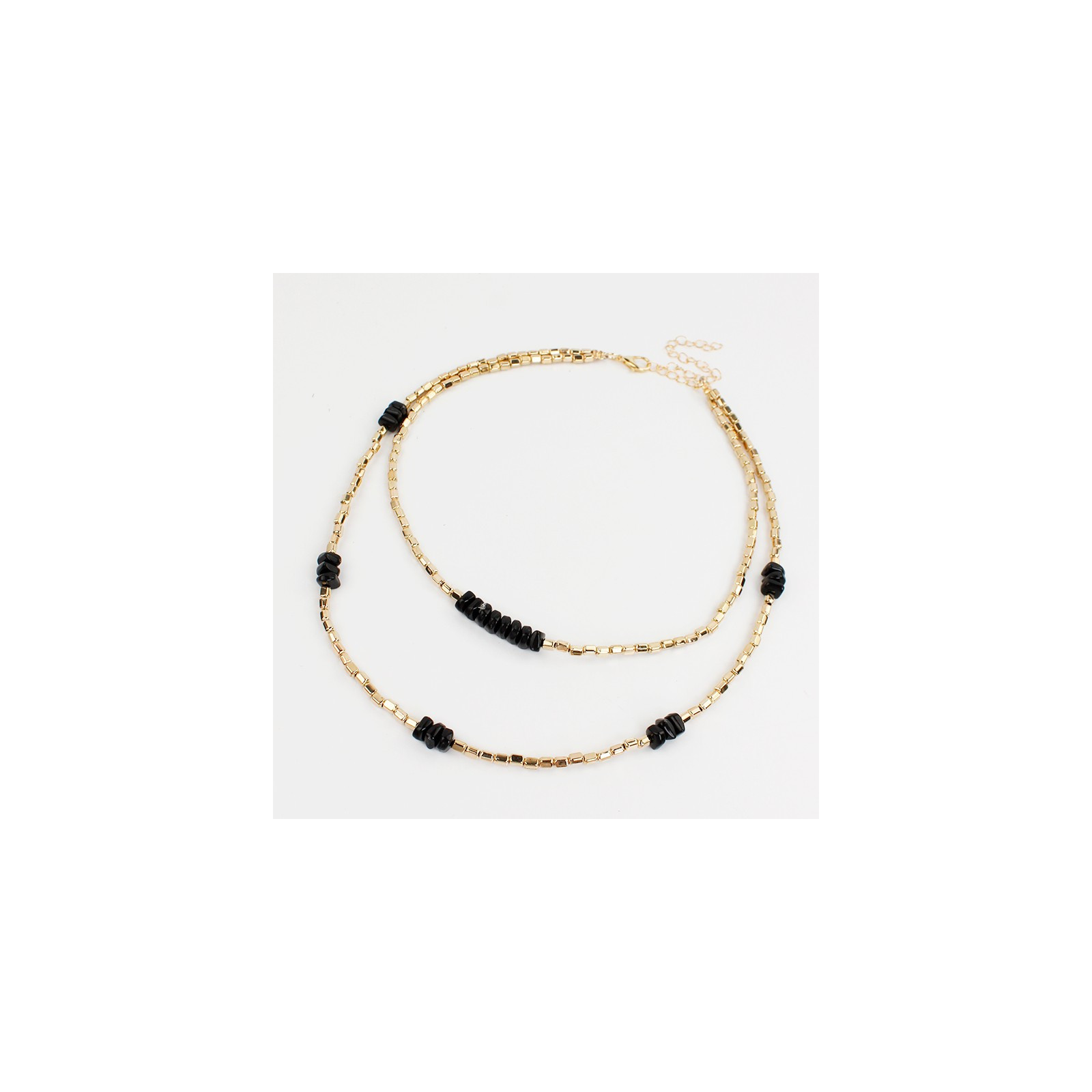 Collar flexible de doble caída de lenga enhebrada con piezas exclusivas de CCB y escallas de acrílico.