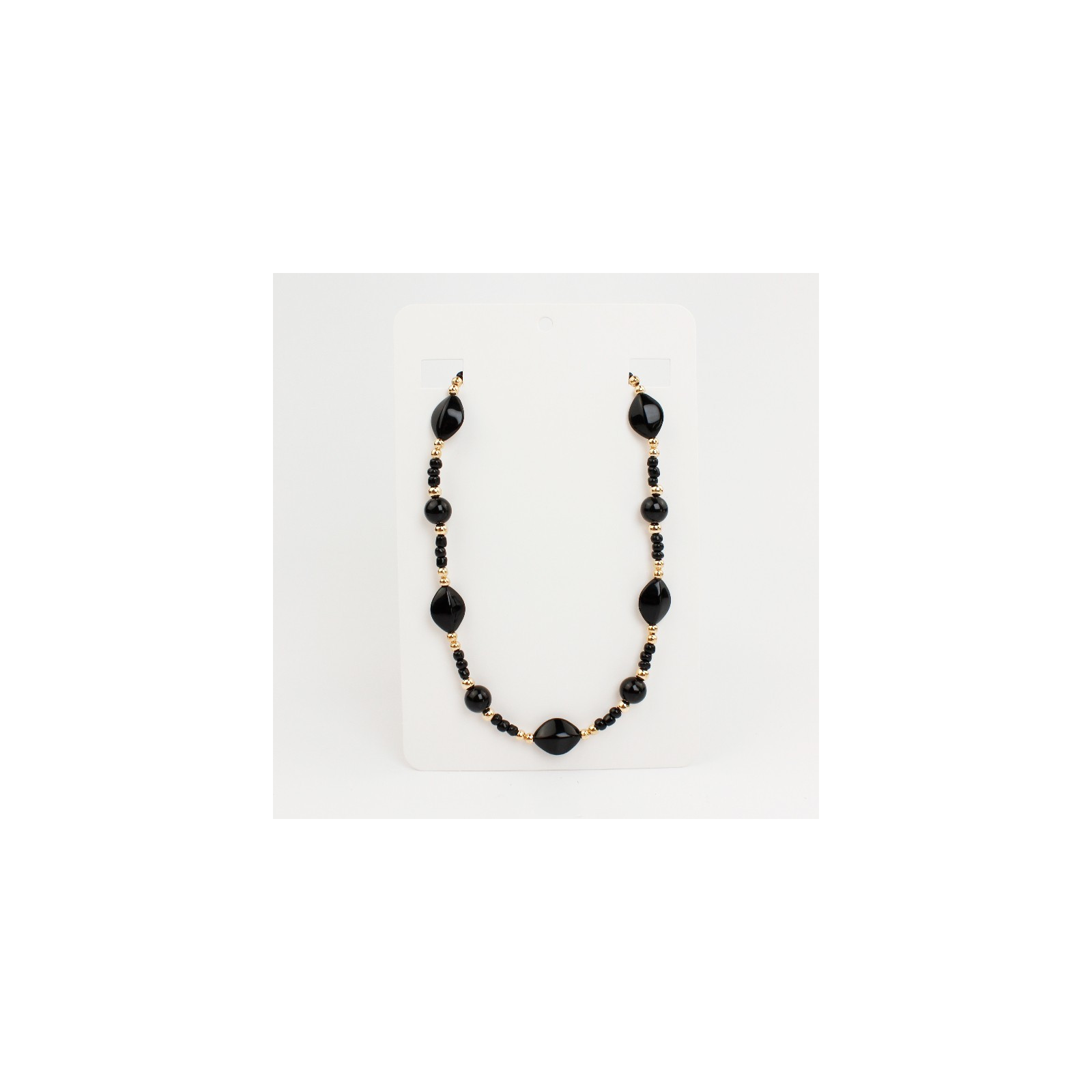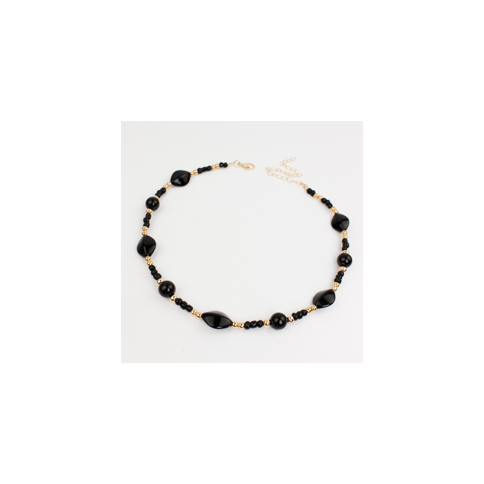 Collar flexible de lenga enhebrada con piezas de acrílico exclusivas combinadas con mostacillas y piezas pasantes de CCB dorado.