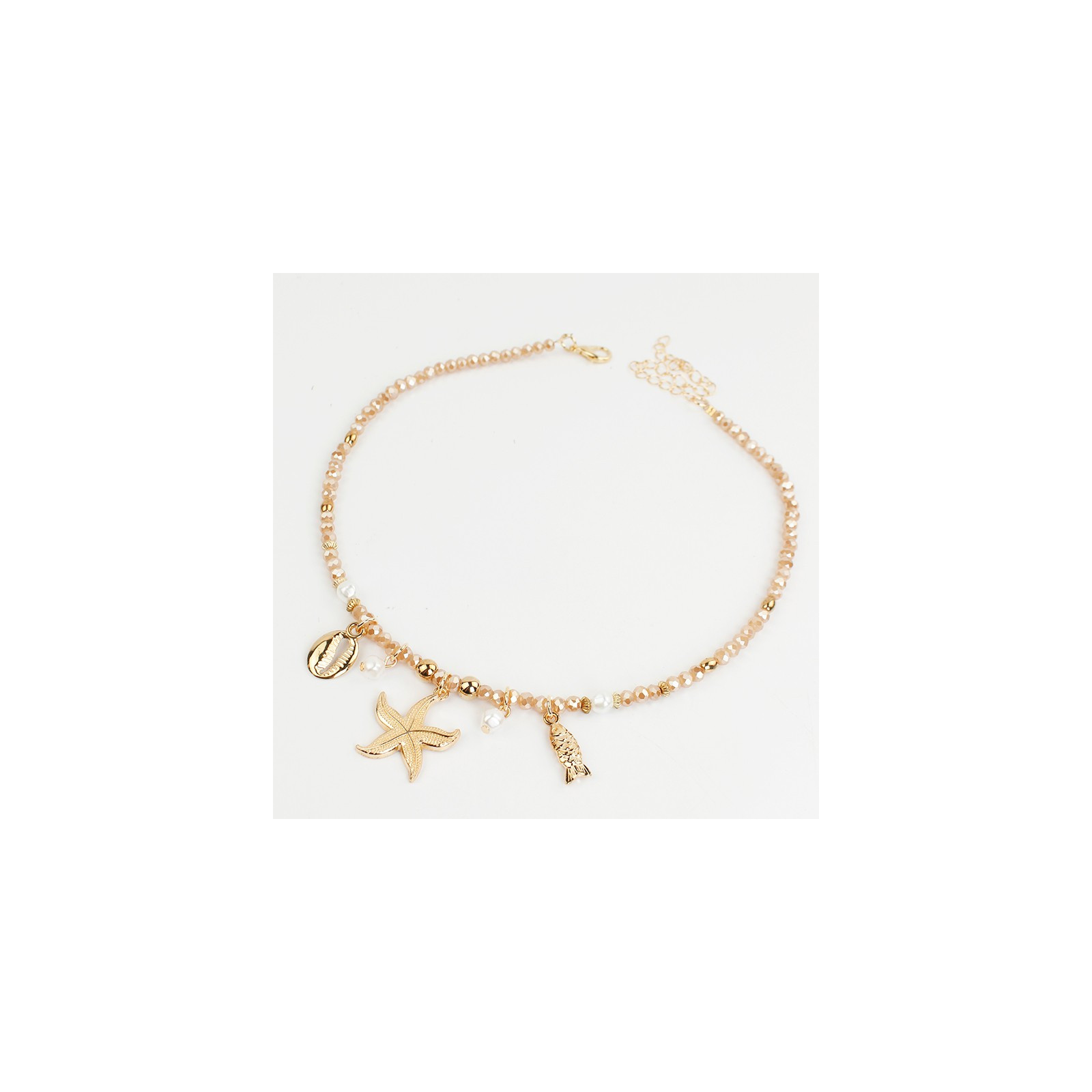 Collar flexible de lenga enhebrada con rocas de cristal diferenciadas combinadas con piezas pasantes de CCB, perlas y múltiples dijes de fundición.