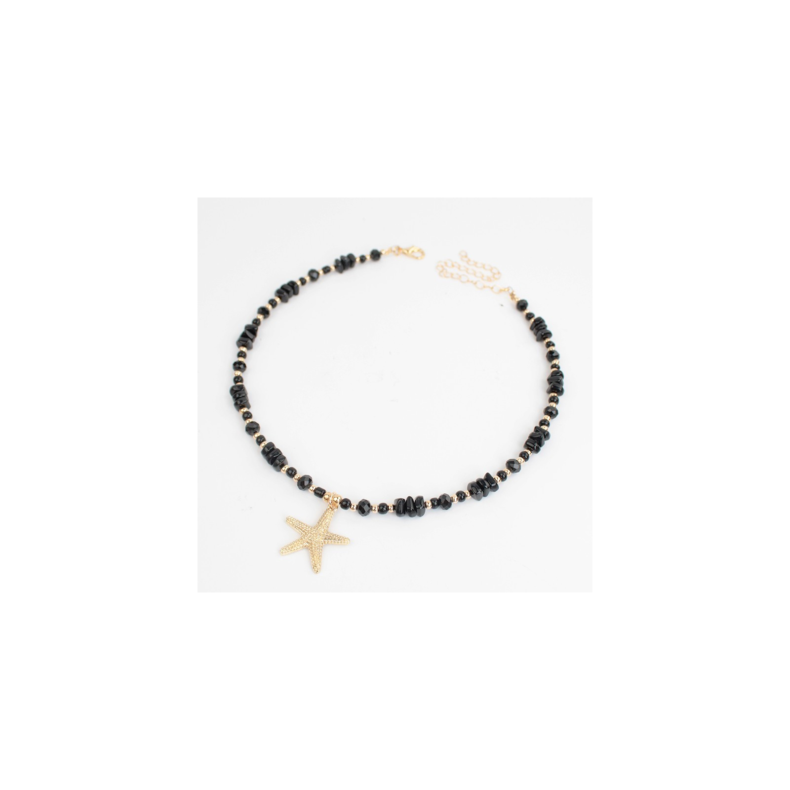 Collar flexible de lenga enhebrado con escallas de acrílico combinadas con rocas de cristal, mostacillas y separadores de CCB.