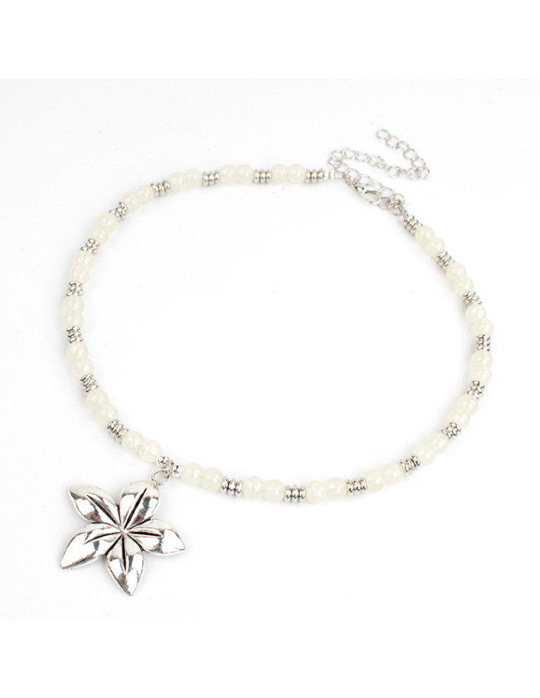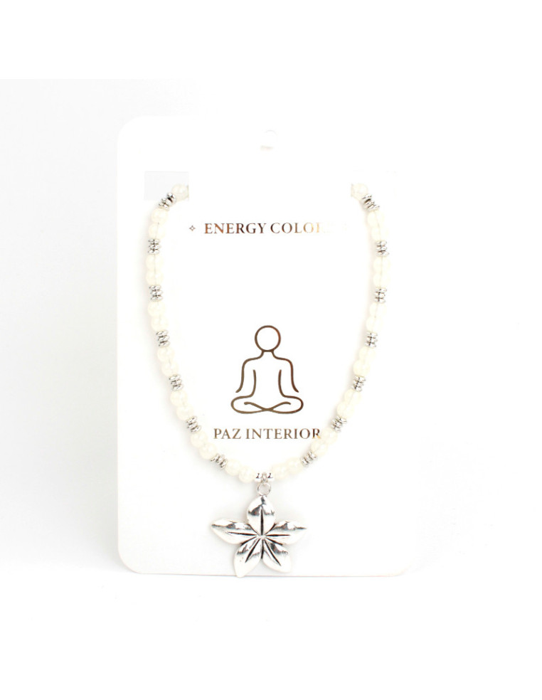 Collar flexible de lenga enhebrada con exclusivas cuentas de vidrio energéticas combinadas con separadores de CCB y dije exclusivo de fundición con forma de flor.