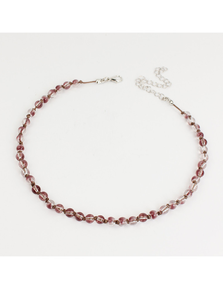 Collar flexible de hilo chino, enhebrado y anudado con exclusivas bolitas de vidrio energéticas.