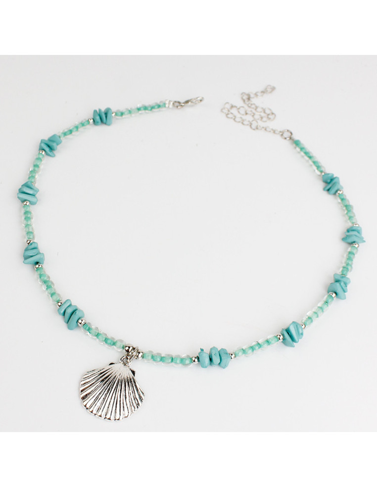 Collar flexible de lenga enhebrada con exclusivas mostacillas de colores, combinadas con escallas de acrílico, piezas de CCB y dije de fundición con forma de estrella de mar.