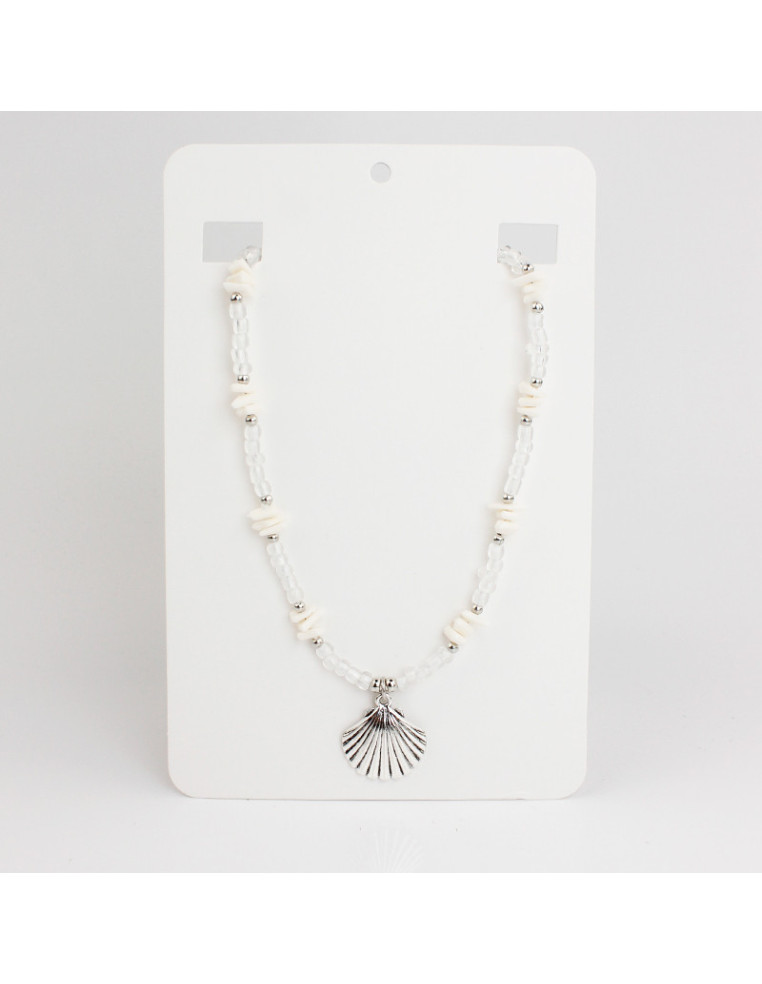 Collar flexible de lenga enhebrada con exclusivas mostacillas de colores, combinadas con escallas de acrílico, piezas de CCB y dije de fundición con forma de estrella de mar.