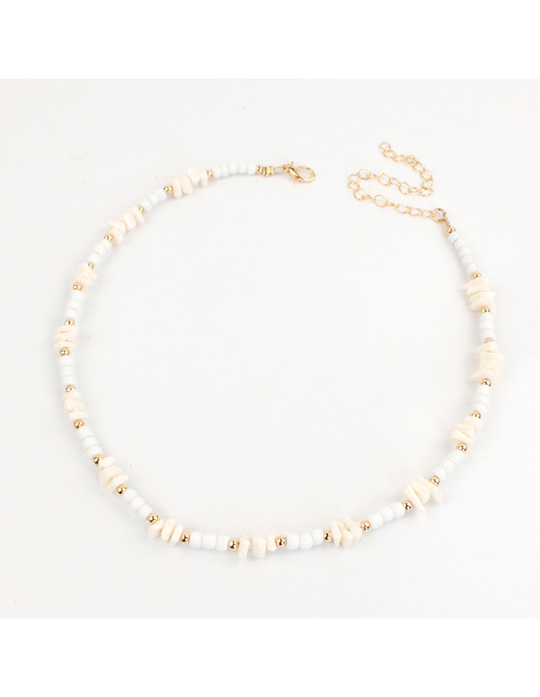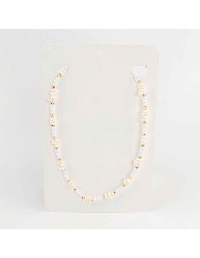 Collar de lenga enhebrado con escallas de acrílico, combinadas con mostacillas, y separadores de CCB dorados.