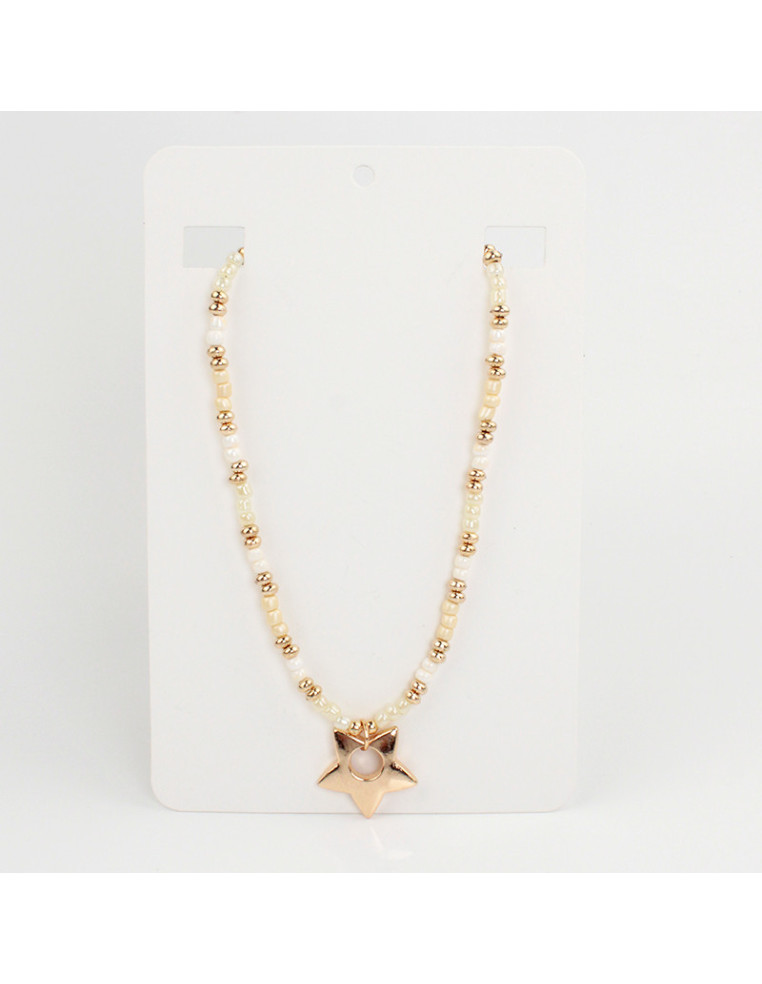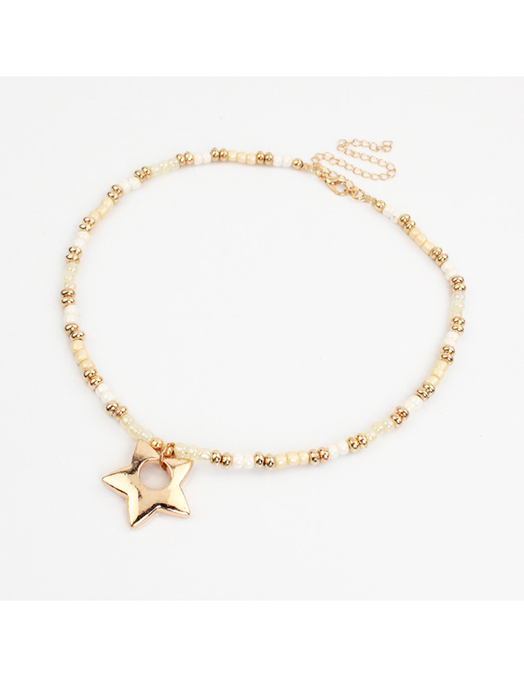 Collar corto de multiples mostacillas y dijes exclusivos con forma de estrella dorada.
