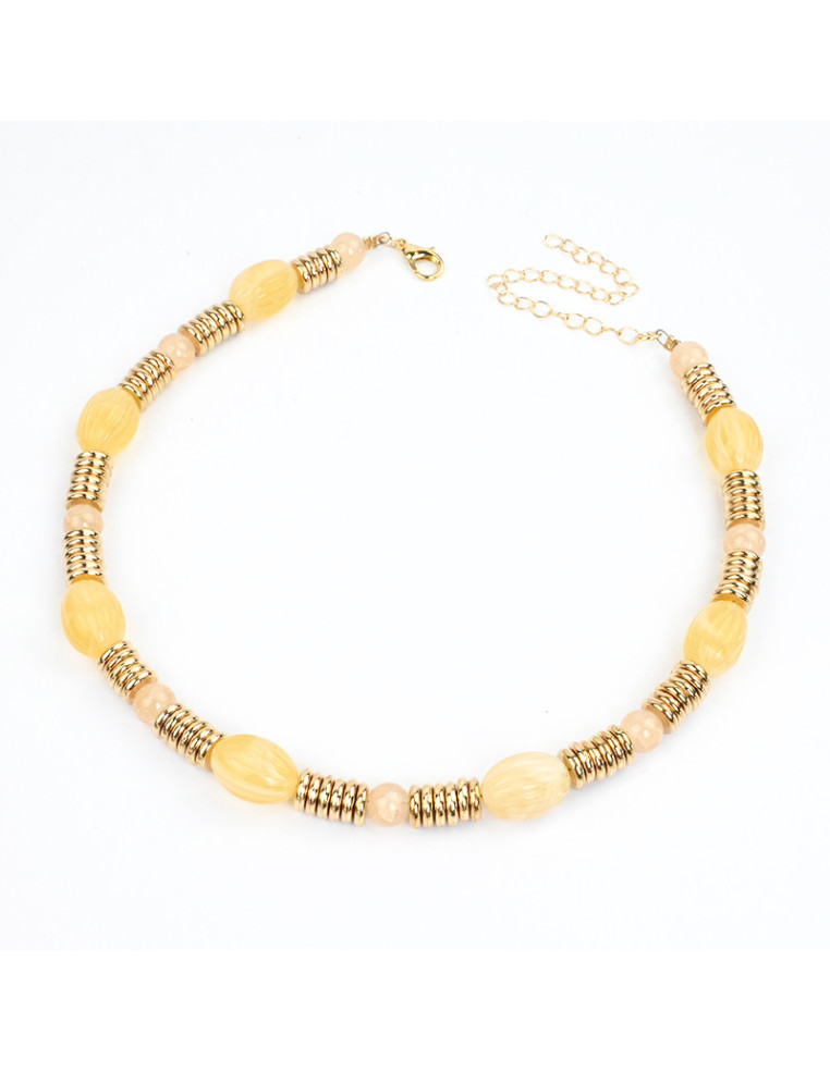 Collar flexible de lenga enhebrada con piezas exclusivas de acrílico, combinadas con cuentas de vidrio y separadores de CCB.