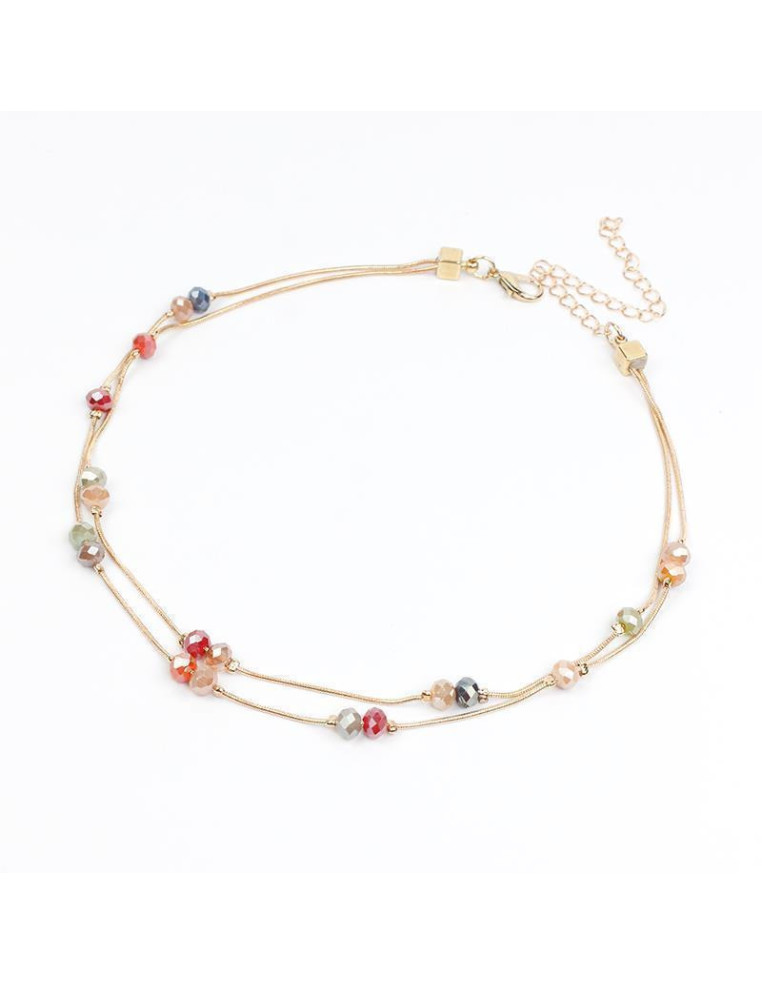 Collar de doble caída de cadena diferenciada intervenida con rocas de cristal.