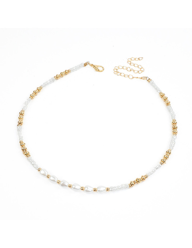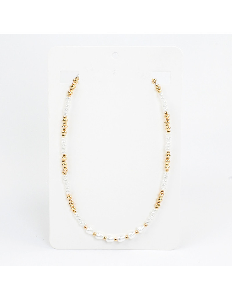 Collar flexible de lenga enhebrada con mostacillas diferenciadas, combinadas con perlas simil rio y separadores de CCB.