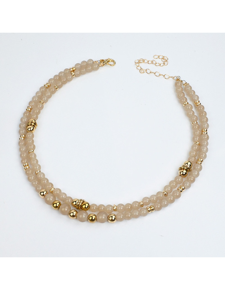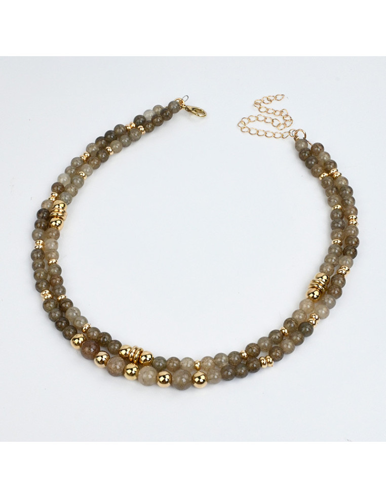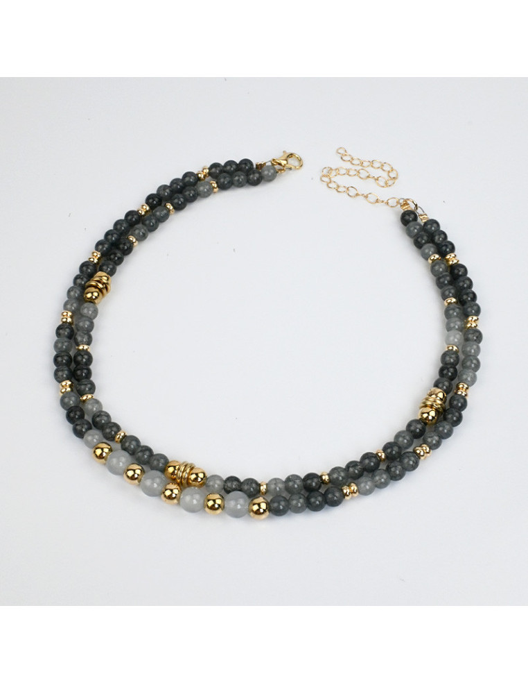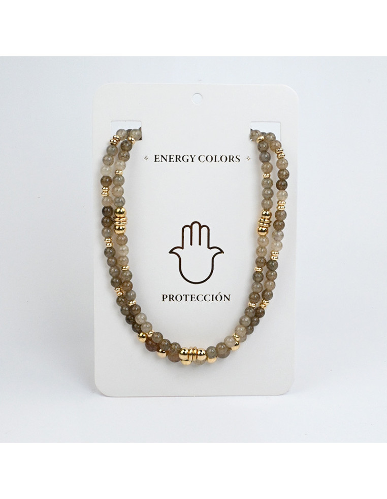 Collar flexible de doble caída de lengas enhebradas con bolitas de vidrio energéticas diferenciadas, combinadas con piezas separadoras de CCB.
