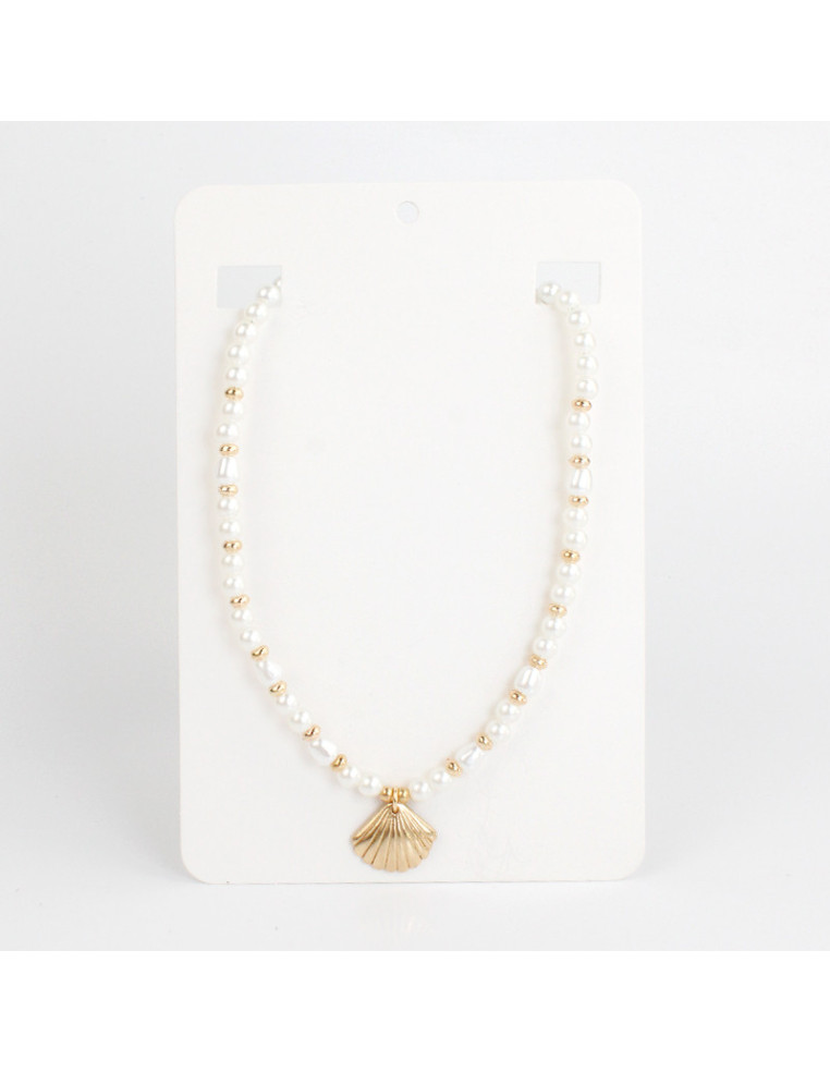 Collar de lenga con perlas simil rio, pasantes de CCB y dije de fundición con forma de caracol.