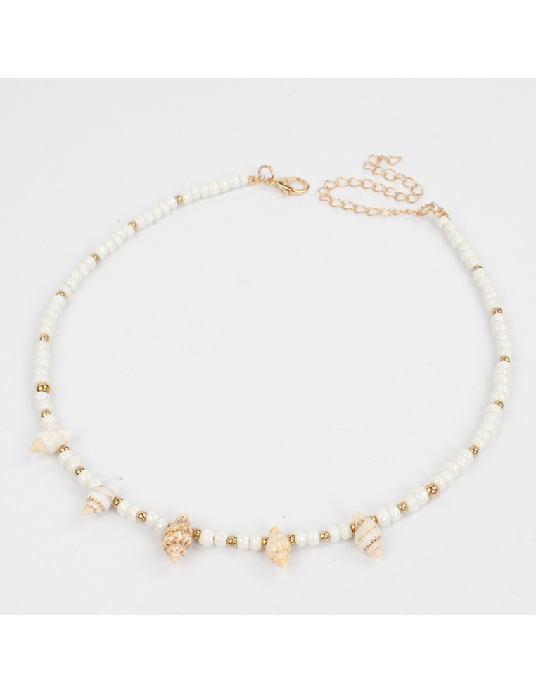 Collar flexible de lenga con mostacillas, combinadas con caracoles naturales.