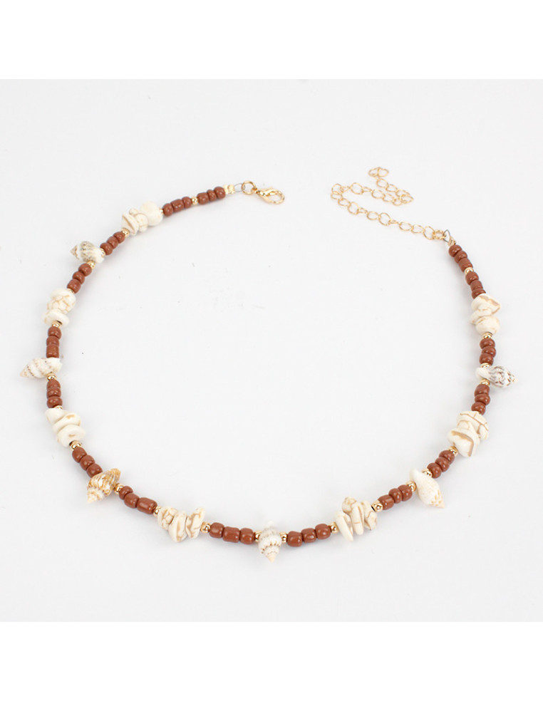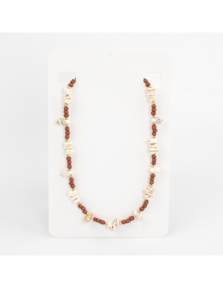 Collar flexible de lenga, con mostacillas, caracoles naturales y separadores de CCB.