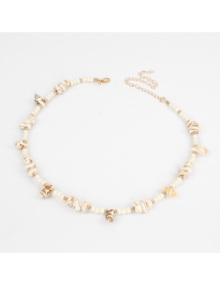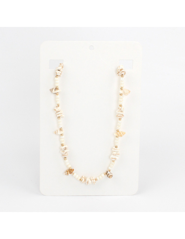 Collar flexible de lenga, con mostacillas, caracoles naturales y separadores de CCB.