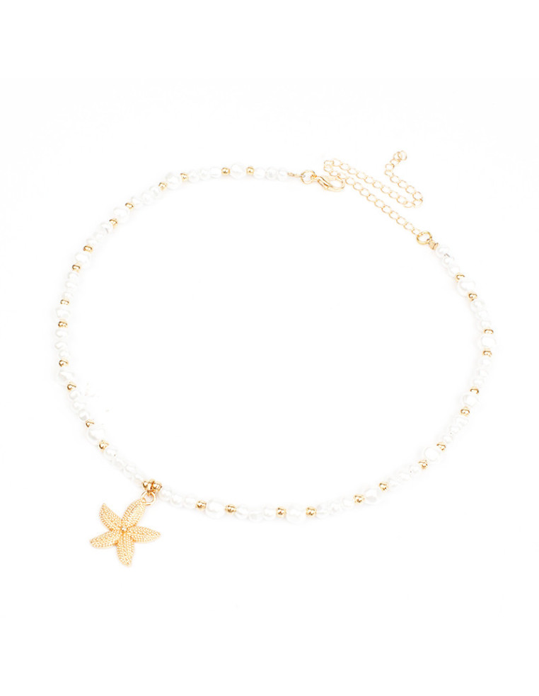 Collar flexible de lenga con perlas simil río, separadores de CCB y dije de fundición marino.