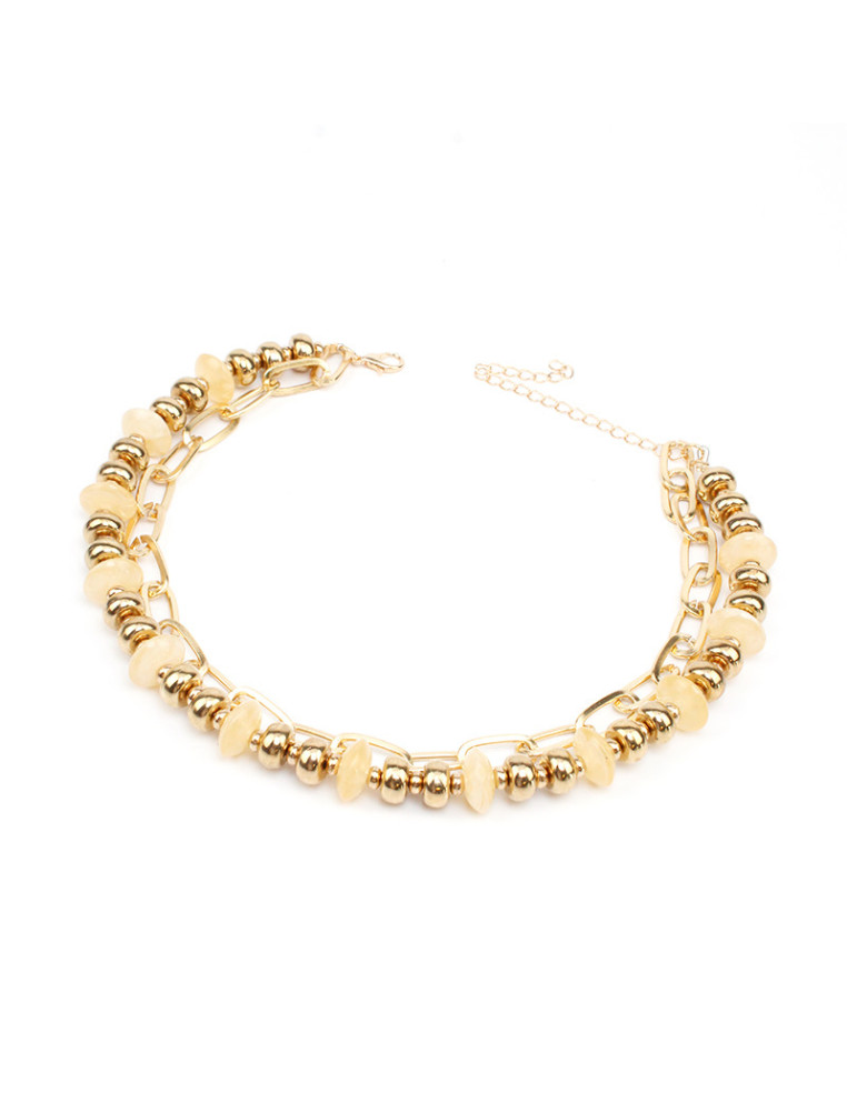 Collar doble de cadena y lenga flexible con dijes de CCB y donas acrílicas exclusivas.