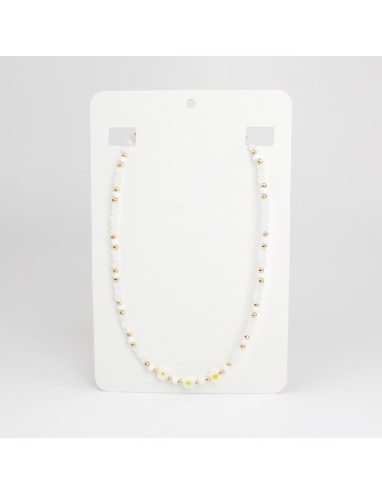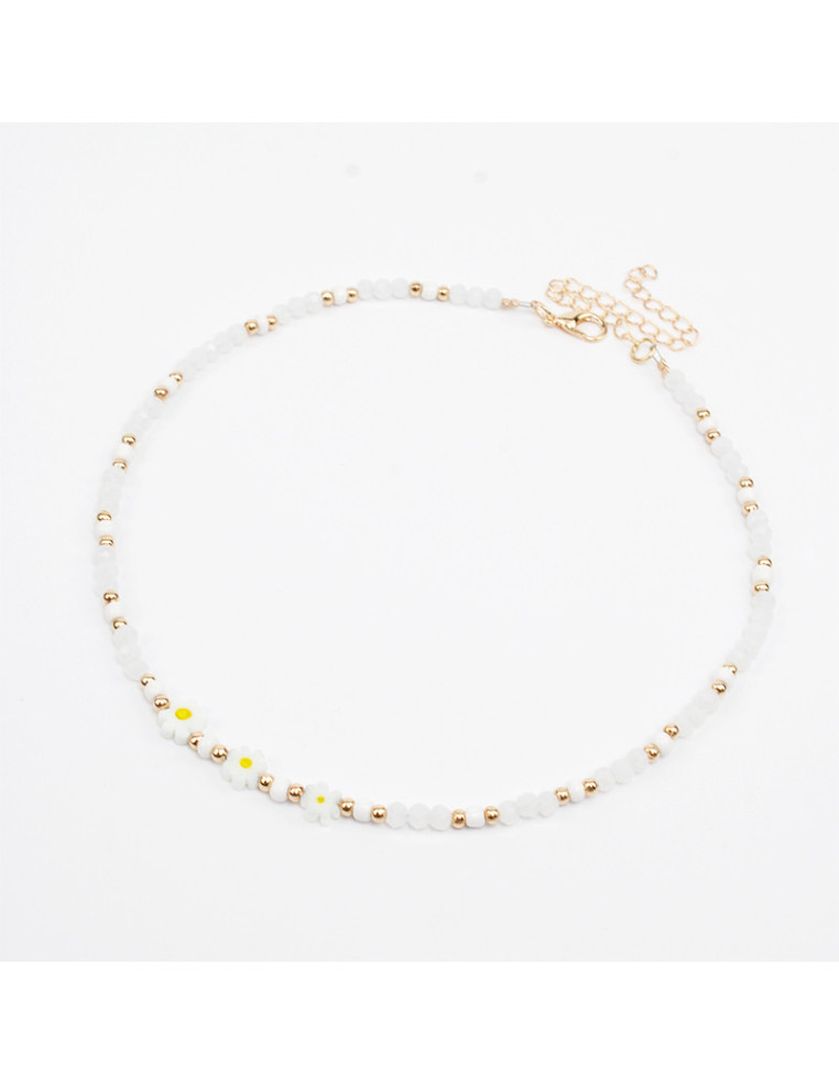 Collar flexible de lenga, con rocas de cristal, mostacillas, separadores de CCB y flores pasantes de murano.