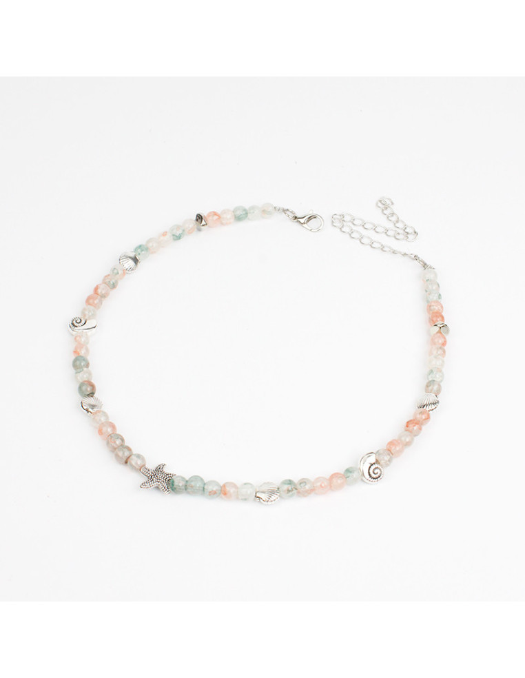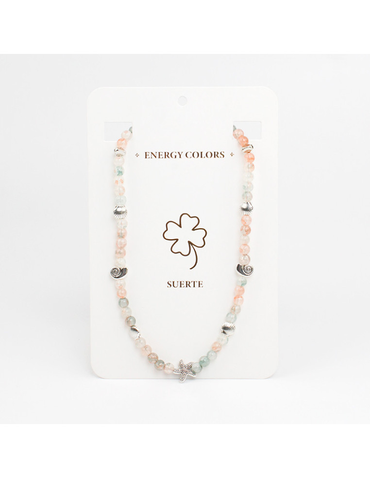 Collar flexible de bolitas de vidrio energéticas con dijes marinos de fundición.