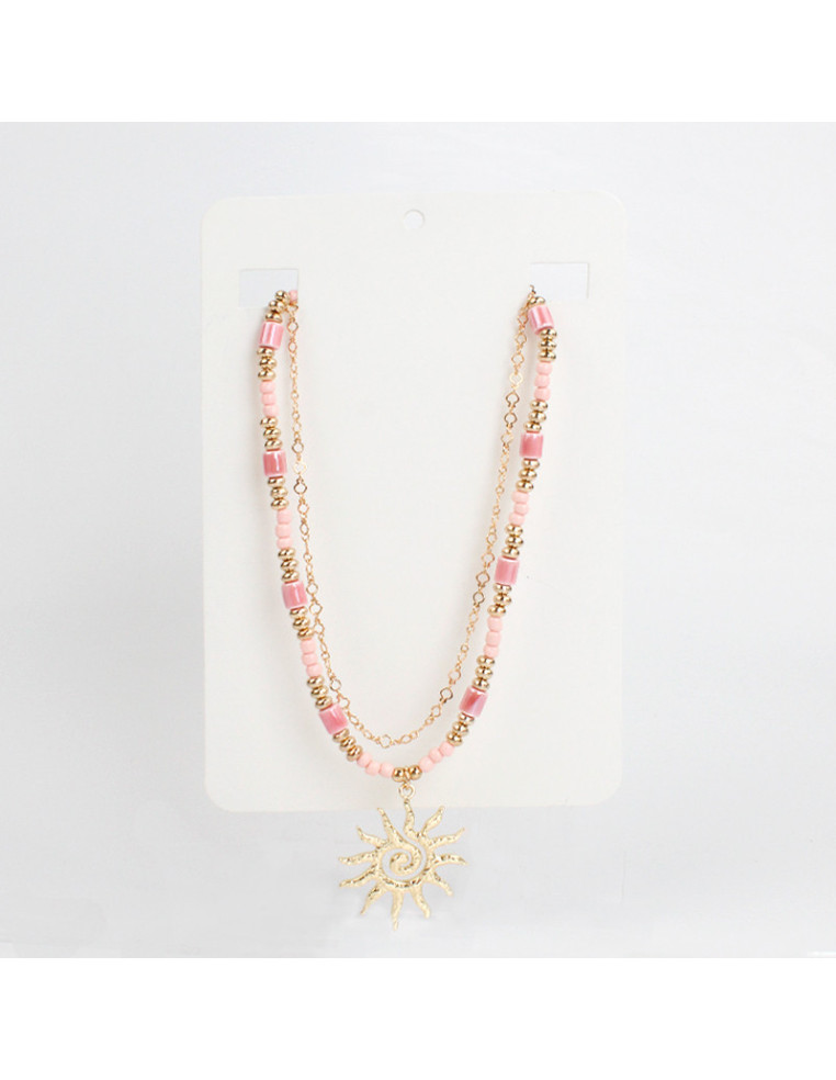 Collar combinado de cadena y lenga con piezas de cerámica, mostacillas, separadores de CCB y dije veraniego con forma de sol.