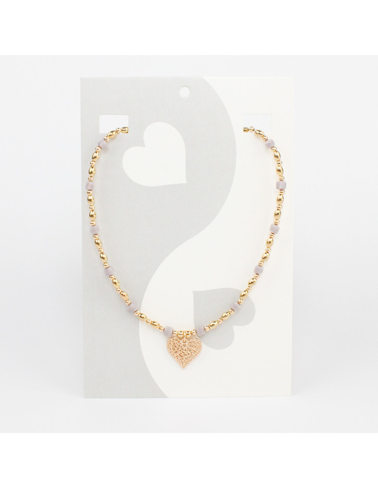 Collar flexible de lenga, con rocas de cristal, pasantes de CCB y dije de fundición con forma de corazón.