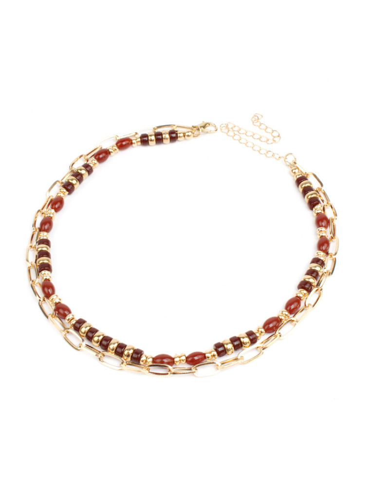 Collar combinado de cadena dorada, otro flexible de lenga con cuentas de vidrio y separadores de CCB.