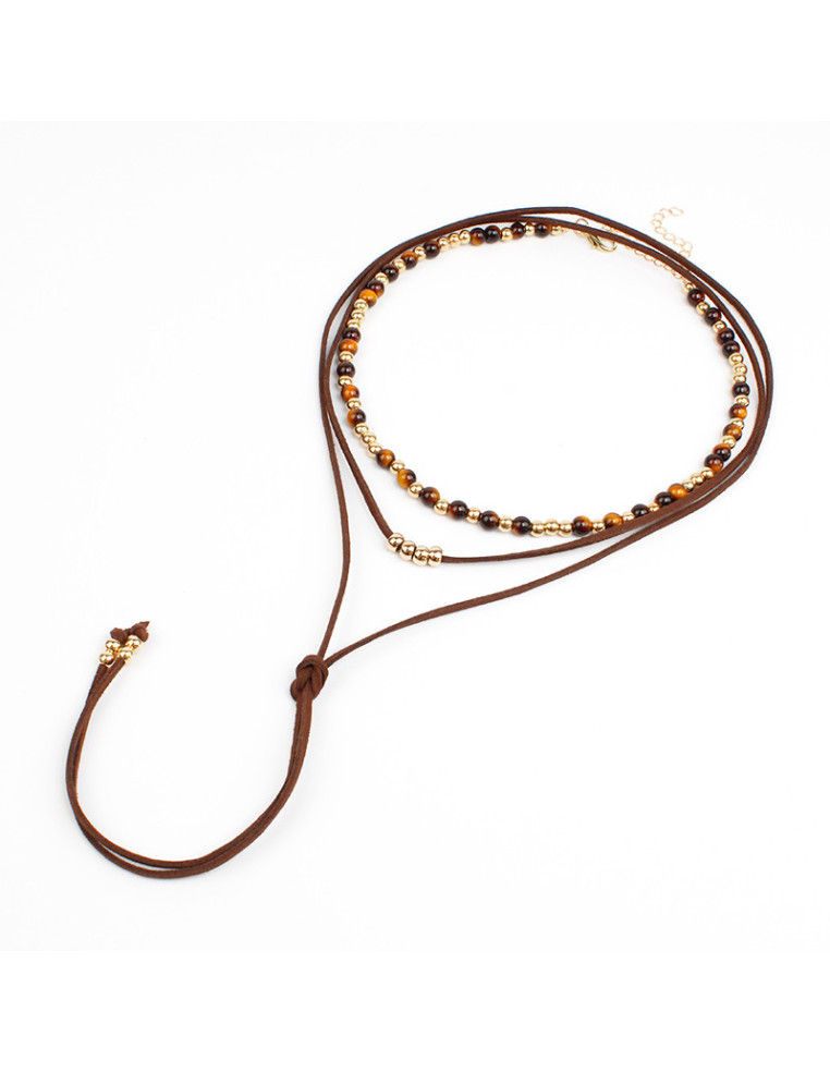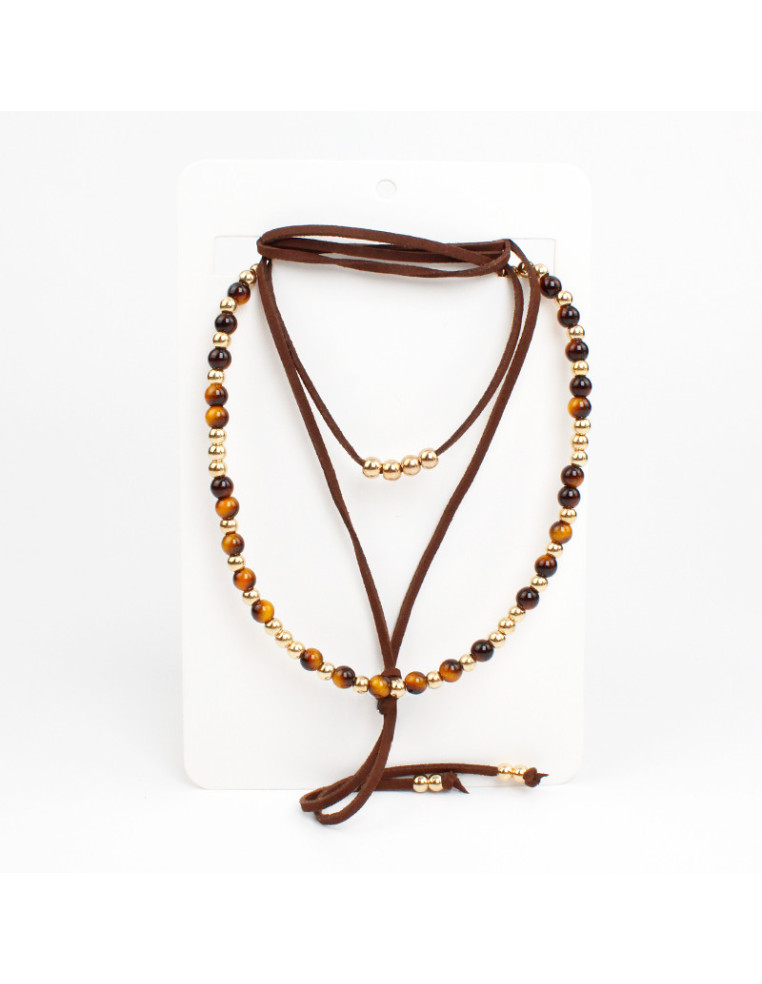 Set de dos collares, uno flexible de lenga con bolitas de vidrio y pasantes de CCB. Otro collar de gamuza de múltiples vueltas.