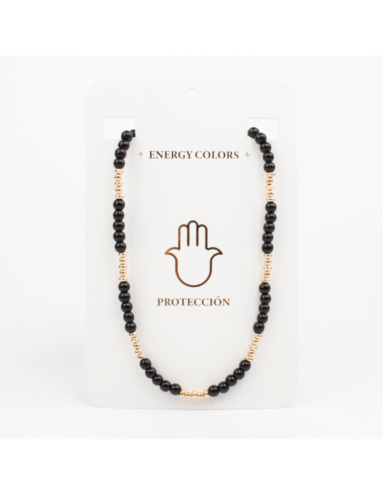 Collar flexible de bolitas de vidrio energéticas, con pasantes de CCB dorado.