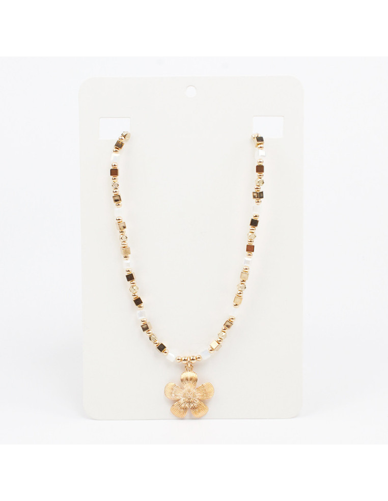 Collar flexible de lenga, con rocas de cristal, pasantes de CCB y dije de fundición con forma de flor.