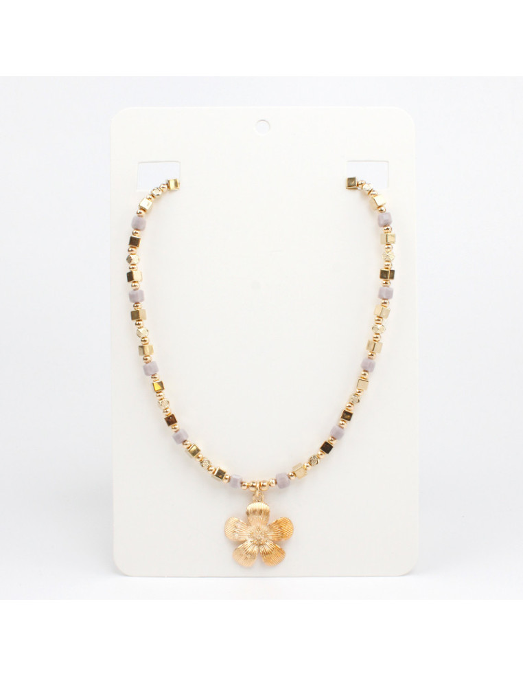 Collar flexible de lenga, con rocas de cristal, pasantes de CCB y dije de fundición con forma de flor.