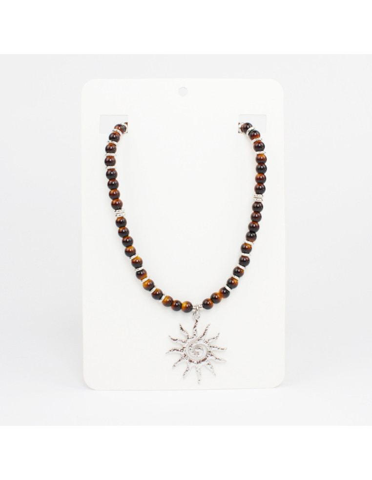 Collar flexible de lenga, con bolitas de vidrio, pasantes de CCB y dije de fundición con forma de sol.