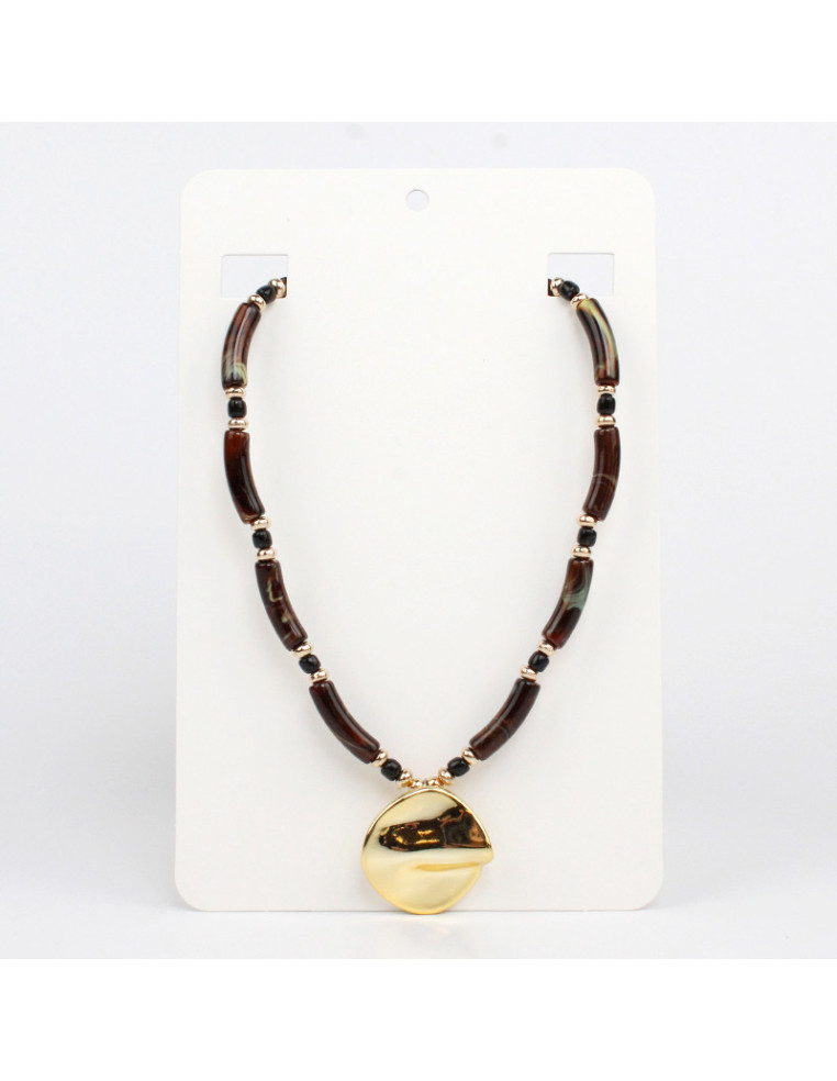 Collar flexible de lenga, con tubos de acrílicos marmolados, mostacillas y pasantes de CCB.