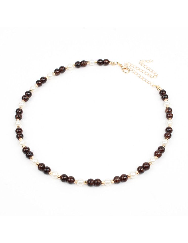 Collar flexible de lenga, con bolitas de vidrio, perlas y separadores de CCB. Medida: 37cm de largo, ajustable con cadena de enganche de 10cm.