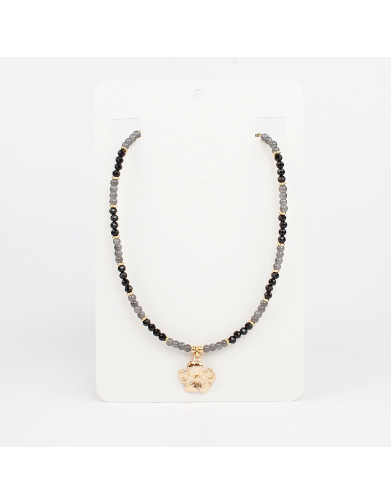 Collar flexible de lenga, con bolitas de vidrio, rocas de cristal, pasantes de CCB y dije de fundición con forma de flor.